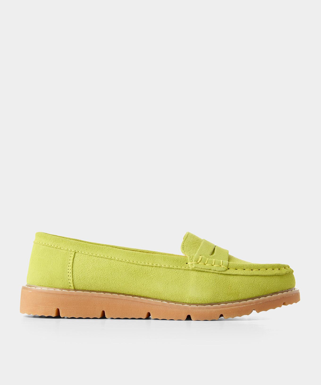 Questi mocassini in pelle scamosciata in tonalità verde intenso sottolineano uno stile sicuro di sé.