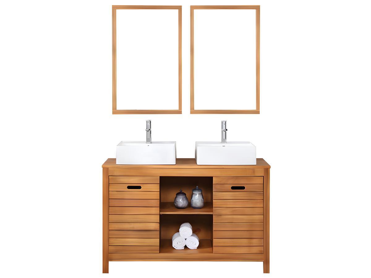 Vente-unique, Mobile bagno con lavabo doppio e specchio 1 in Legno di acacia PULUKAN