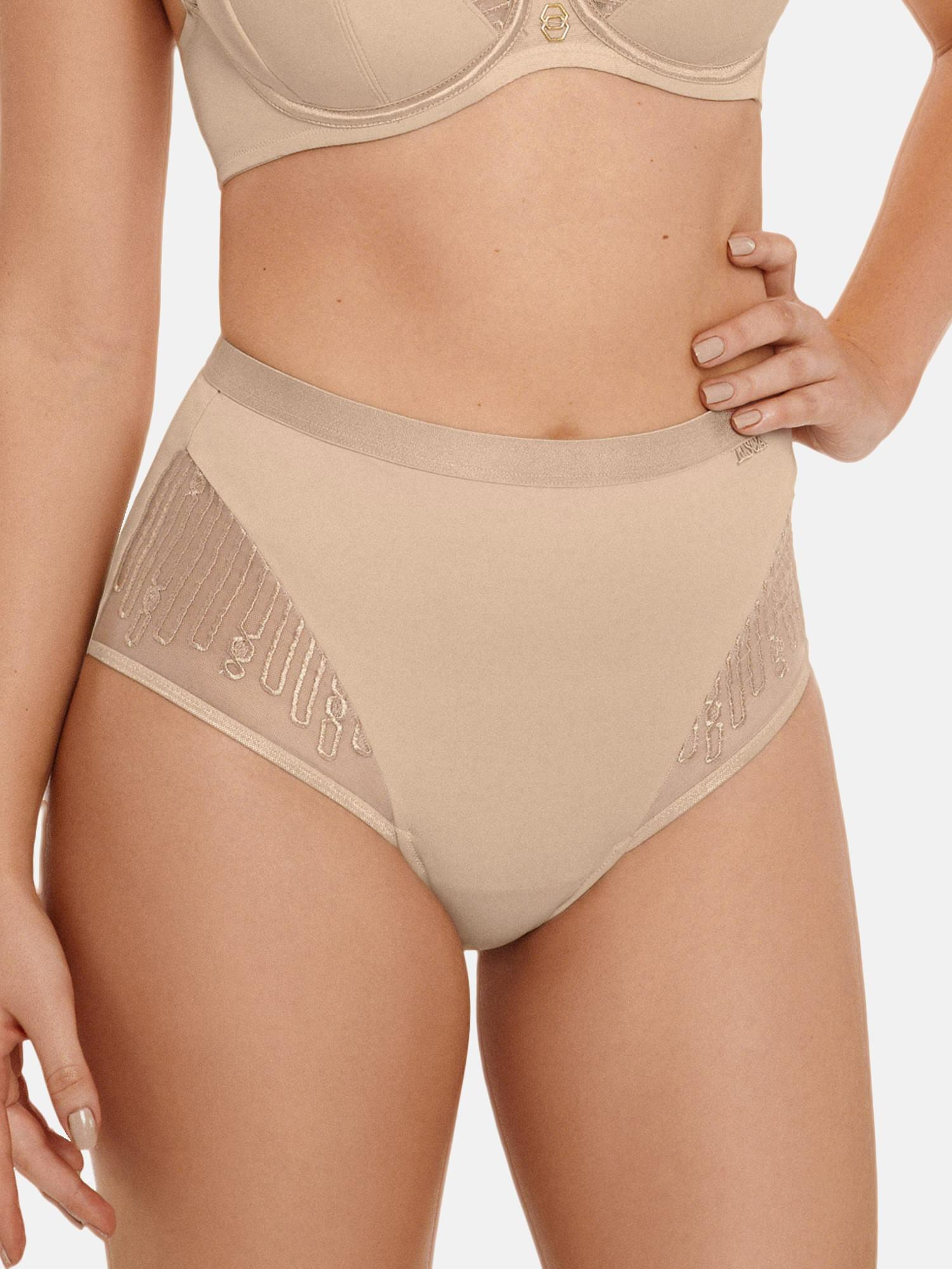 Questo slip a vita alta della collezione Ivonne offre un design elegante realizzato in maglia morbida e confortevole, combinata con un accattivante ricamo trasparente. La parte anteriore è foderata con tulle elastico funzionale per stringere delicatamente l'addome e modellare la figura. Un elastico sottile e piatto in vita offre un comfort ancora maggiore. I bordi dell'apertura delle gambe, morbidi, sottili e trasparenti, rimangono invisibili sotto i vestiti. Un tassello in cotone garantisce un comfort intimo.