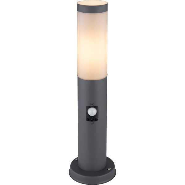 Lampada da esterno acciaio inox antracite, plastica opale, IP44, sensore:90, portata: 2-8m, P:127, H:450, escl.1xE27 60W 230V