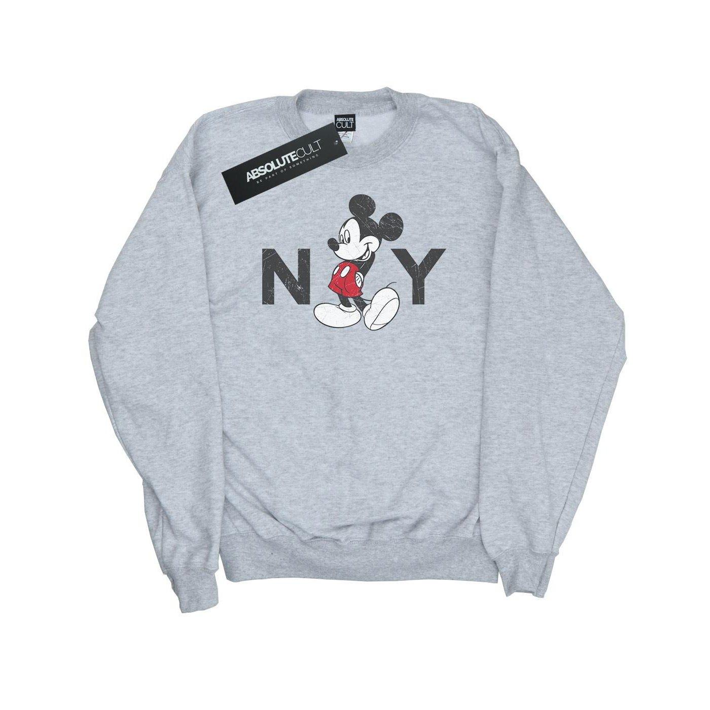 Questa felpa presenta un classico girocollo e maniche lunghe, offrendo una vestibilità comoda e rilassata. Il design mostra una grafica giocosa di Topolino integrata nelle lettere "NY", rendendola un capo distintivo per i fan.