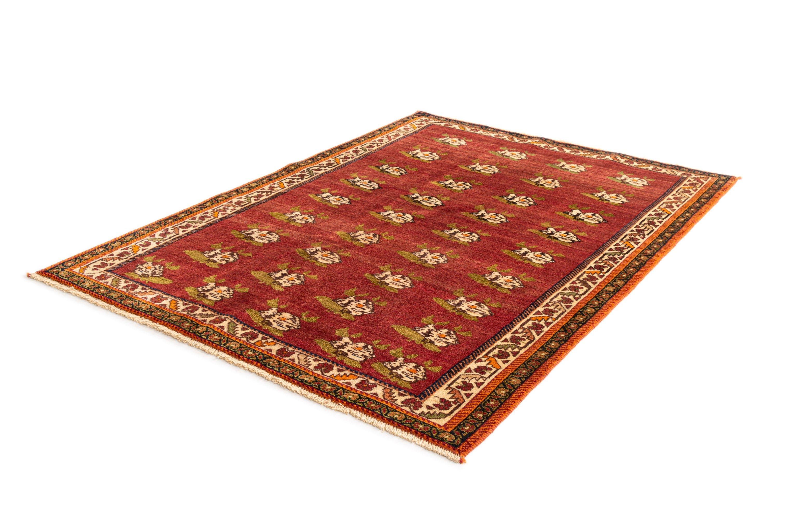 Ein authentischer persischer Teppich, der nur aus natürlichen Materialien mit traditionellen Motiven und Farben hergestellt wird.