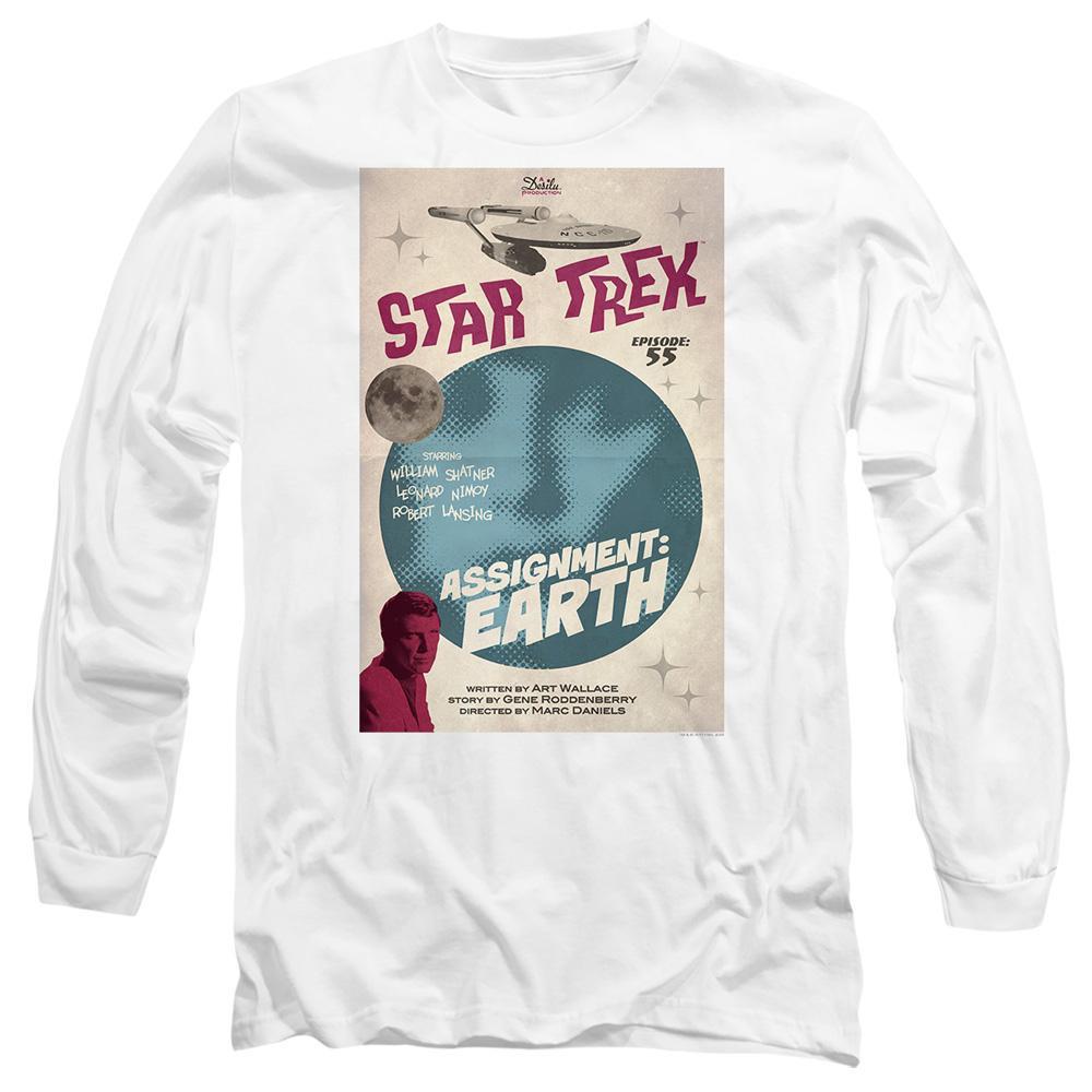 Questa t-shirt presenta una stampa grafica ispirata all'episodio 55 di "Star Trek: The Original Series", intitolato "Assignment: Earth". Il design include immagini classiche di Star Trek e dettagli dell'episodio, rendendola un capo distintivo per i fan.