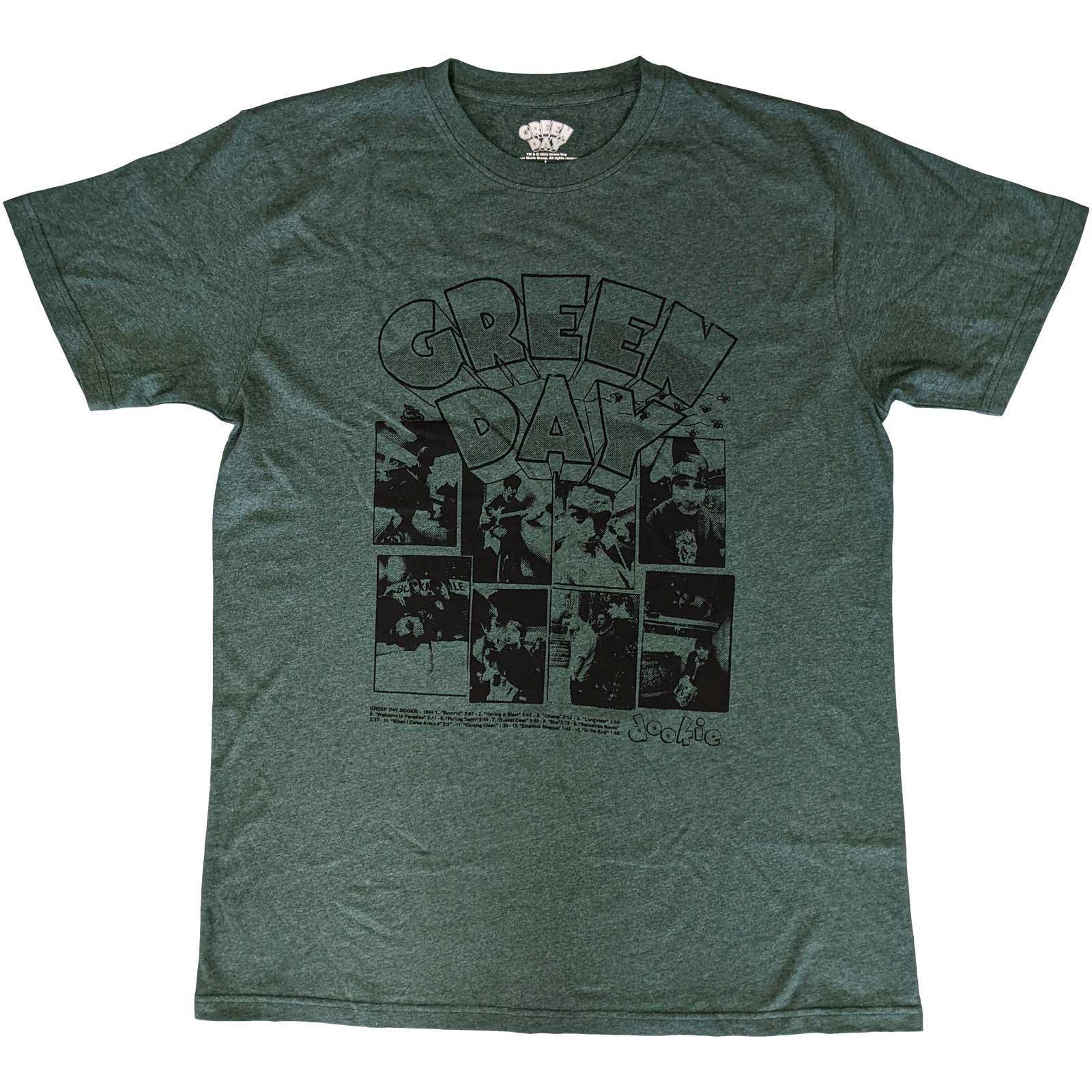Questa T-shirt presenta un classico girocollo e maniche corte, offrendo una vestibilità comoda e casual. La parte anteriore della maglietta mostra una stampa grafica ispirata all'iconico album "Dookie", che mette in risalto il nome della band e le immagini della copertina dell'album. È realizzata con una miscela di cotone riciclato e poliestere riciclato, rendendola una scelta ecologica.