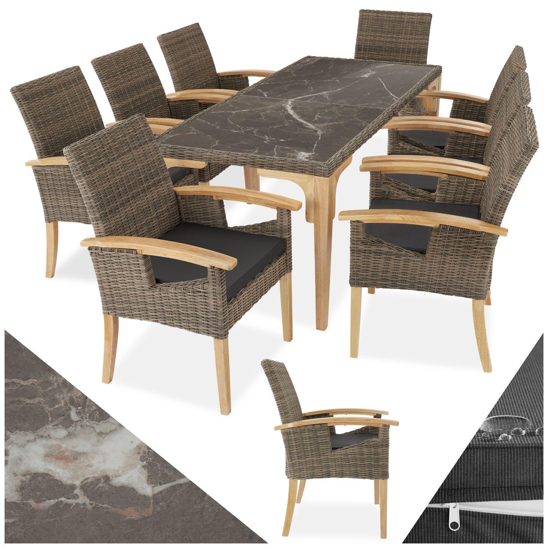 Tectake Tavolo in rattan Foggia con 8 sedie Rosarno con robusti telai in legno