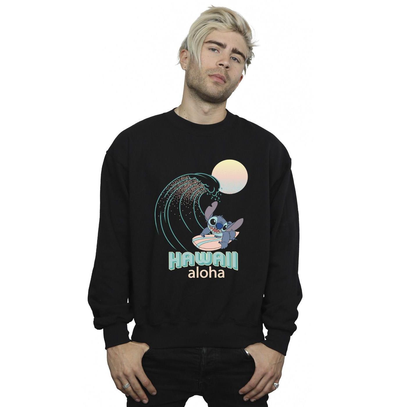 Questa felpa presenta una stampa giocosa di Stitch che cavalca un'onda con la scritta "Hawaii Aloha", rendendola un'aggiunta divertente a qualsiasi guardaroba casual. Il classico girocollo e le maniche lunghe offrono una vestibilità comoda per l'uso quotidiano.