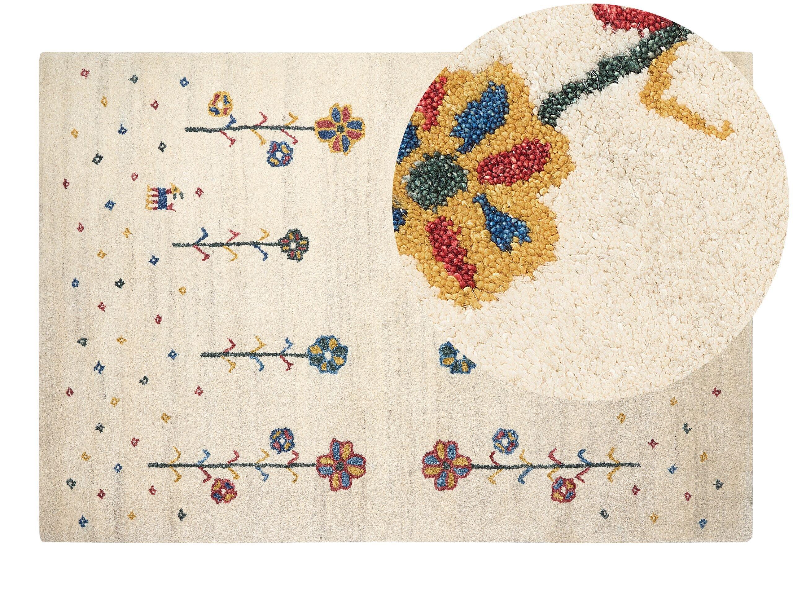 Tappeto con motivo floreale. Dona un tocco naturale al tuo salotto, alla tua camera da letto o alla cameretta grazie a questo affascinante tappeto. Realizzato a mano con lana di alta qualità, è morbido e accogliente. Garantisce calore e una lunga durata nel tempo, quindi non richiede alcuna manutenzione speciale. È un accessorio perfetto sia per ambienti in stile tradizionale che boho.