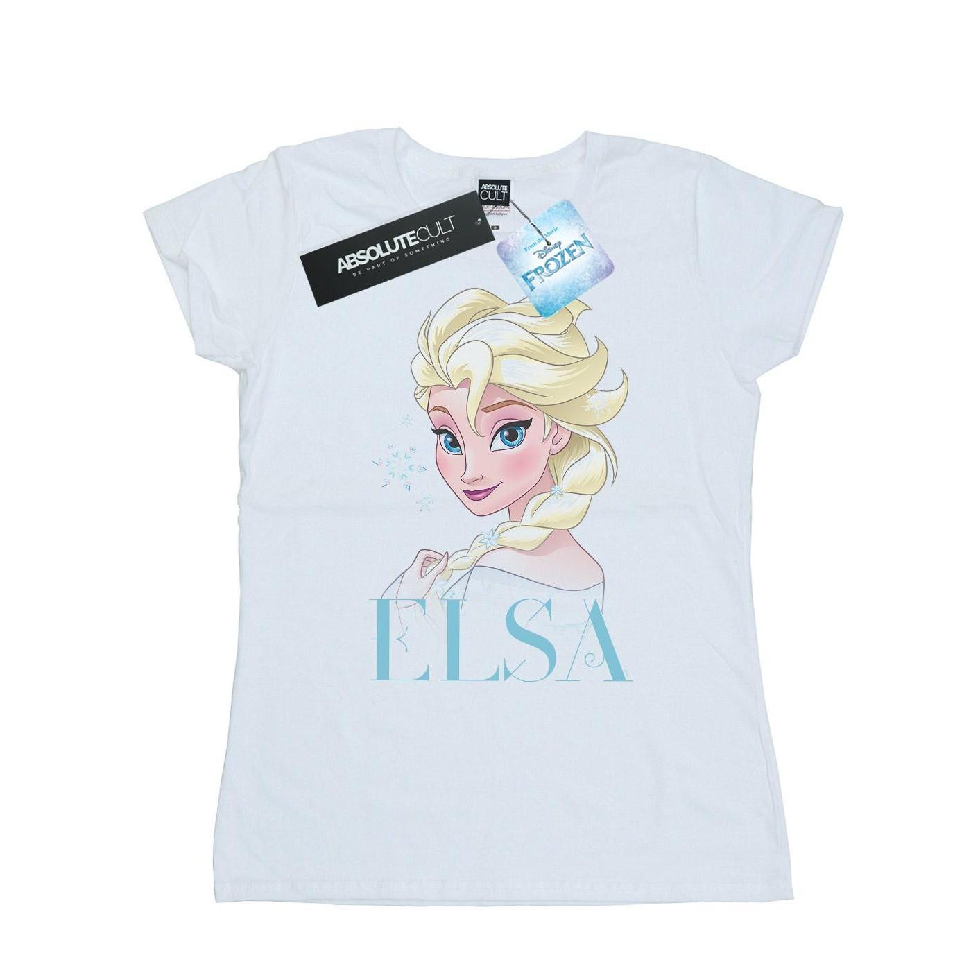 Questa t-shirt a maniche corte presenta una stampa grafica di Elsa di Frozen della Disney. Il design include il ritratto di Elsa con il suo nome stampato sotto, rendendola un'aggiunta affascinante al guardaroba di ogni fan.