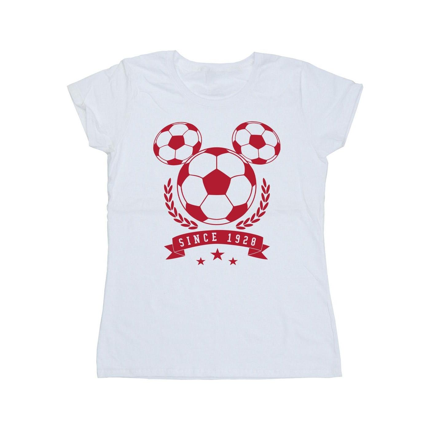 Questa T-shirt presenta una grafica giocosa di palloni da calcio disposti in una silhouette familiare, accentuata da una corona d'alloro e uno striscione con la scritta "SINCE 1928" e tre stelle. Offre uno stile comodo e casuale.
