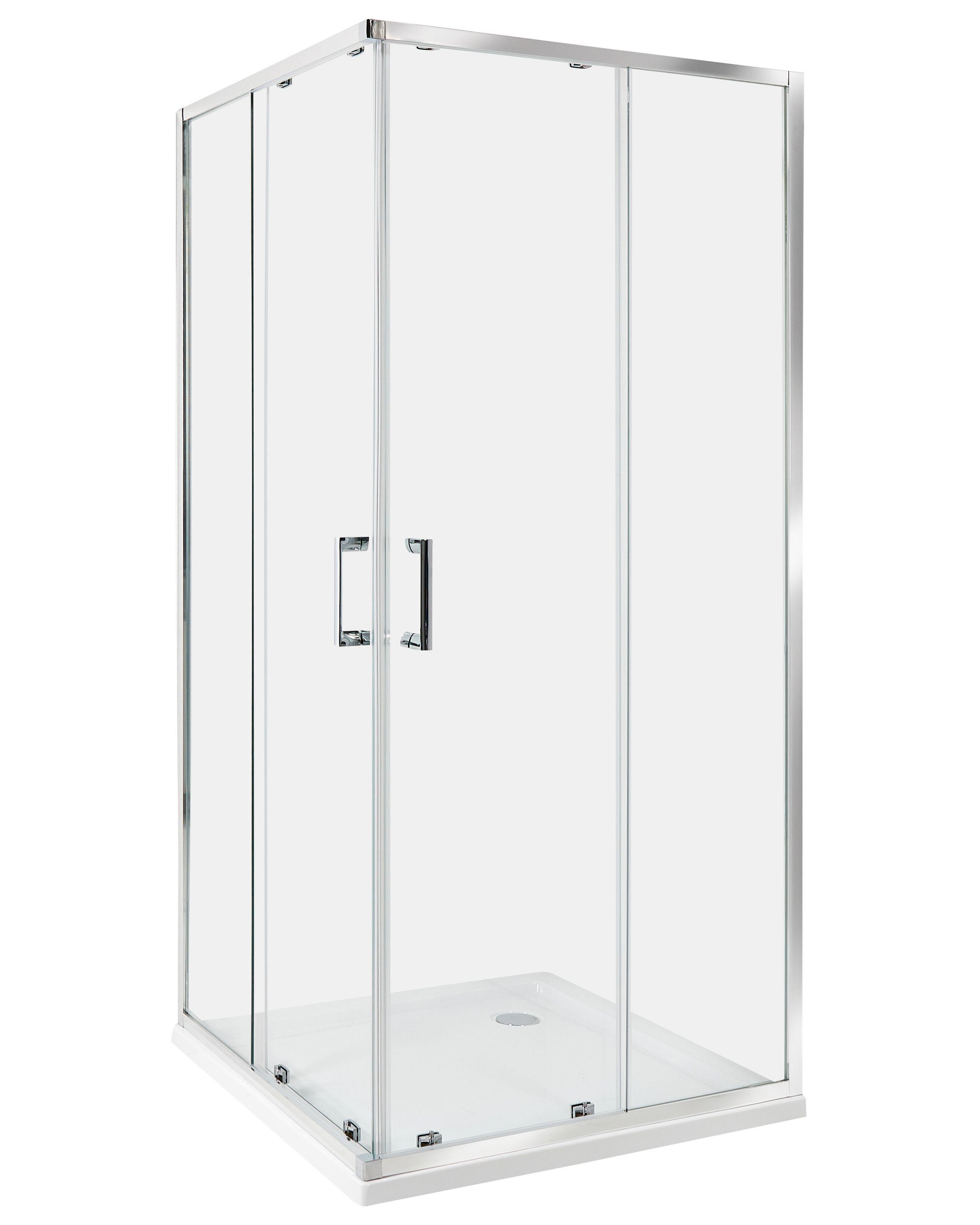 Cabina doccia con doppia porta scorrevole. Aggiungi un pratico elemento al tuo bagno con questa cabina doccia quadrata. Le pareti sono realizzate in vetro temperato di alta qualità, che garantisce la durata del prodotto. La struttura è in alluminio di colore nero, un dettaglio che accentua ulteriormente il design moderno. Le doppie porte proteggono l'esterno della doccia da schizzi e sporco, così non dovrai preoccuparti di scivolare quando esci.