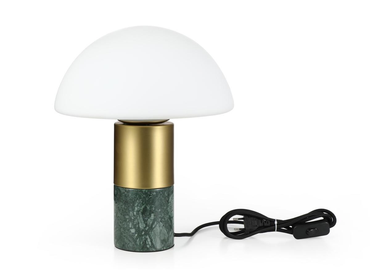 Vente-unique Lampada da tavolo fungo D. 30 x H. 35 cm in Marmo, Metallo e Vetro Bianco e Dorato - LANGFORD