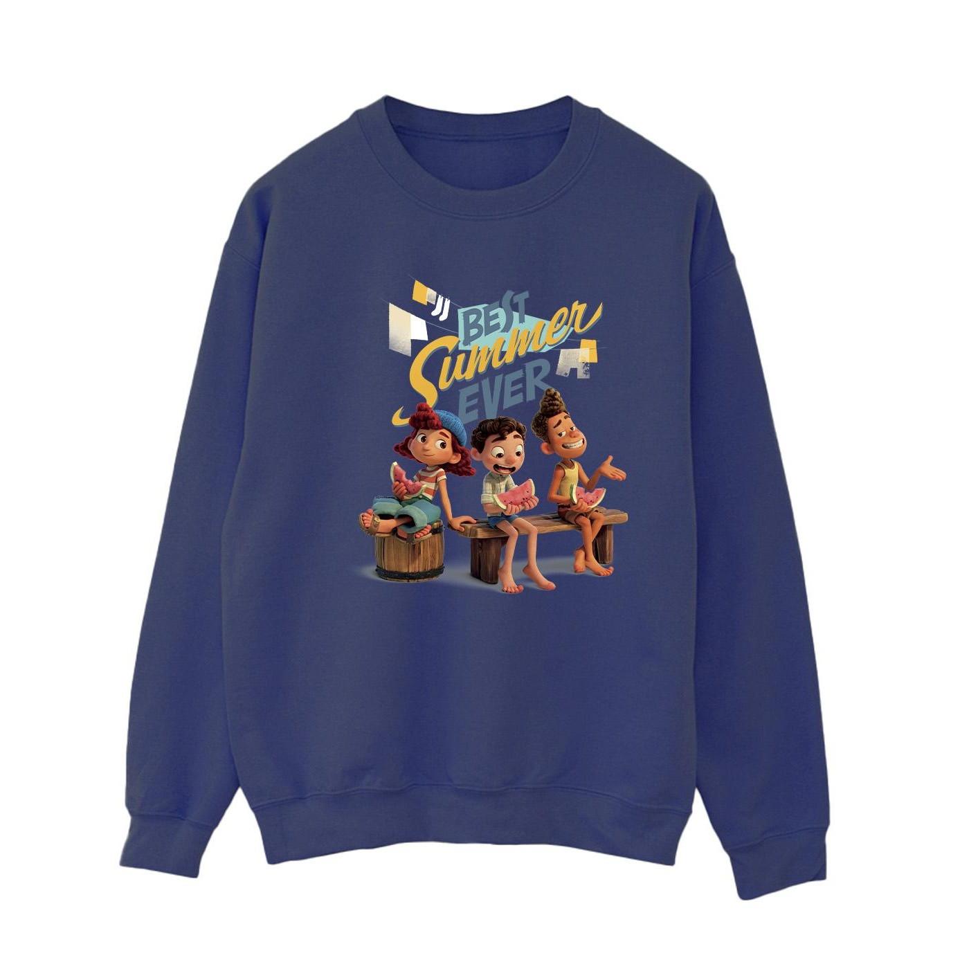 Questa felpa presenta una stampa grafica giocosa che cattura l'essenza del divertimento estivo. Il design mostra tre personaggi che gustano l'anguria, con la frase "Best Summer Ever" ben visibile sopra di loro. È un'opzione comoda ed elegante per l'abbigliamento casual.