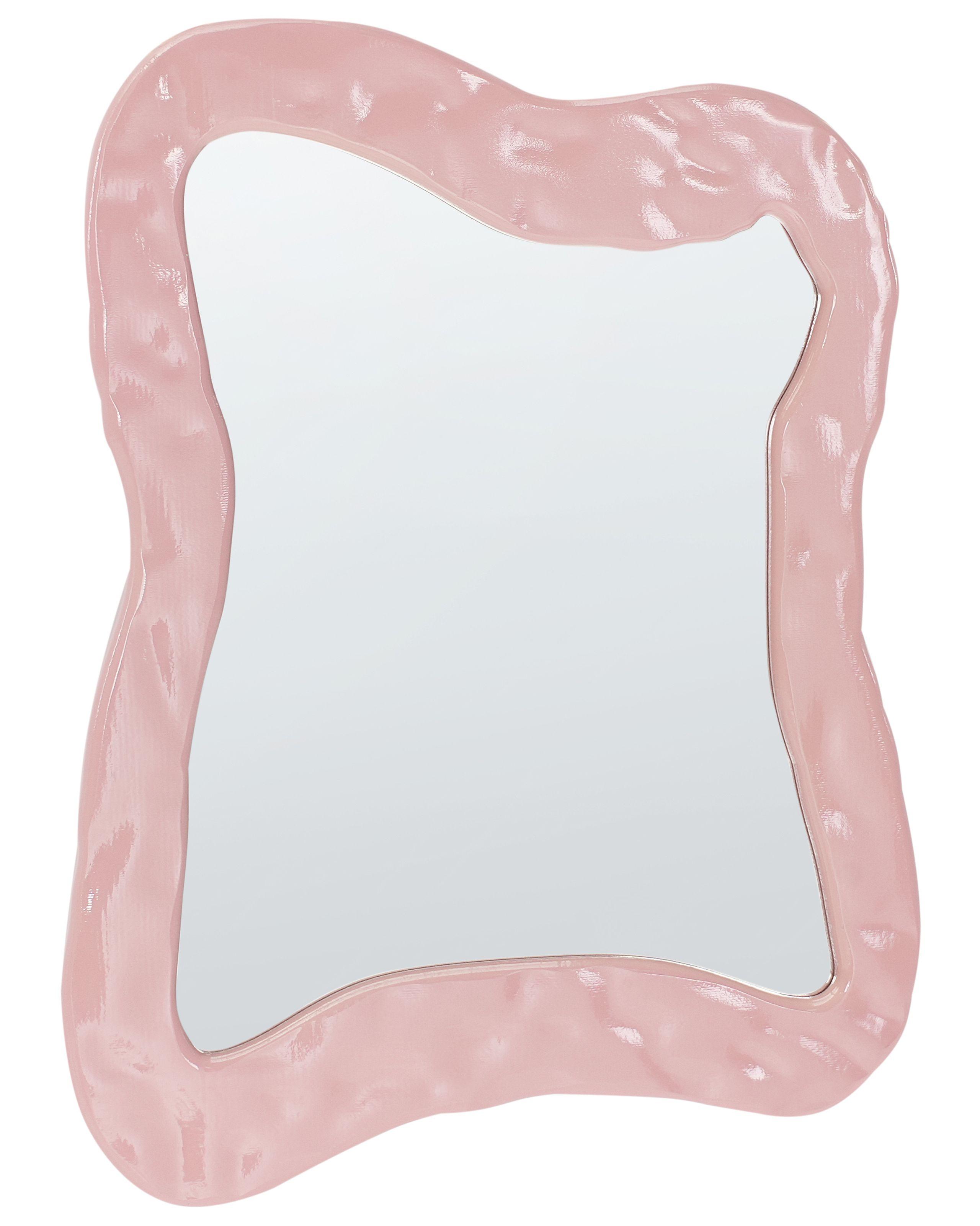 Specchio asimmetrico da appendere con cornice. Illumina il tuo spazio con questo specchio decorativo dal design rétro e accattivante. La cornice in MDF realizzata artigianalmente e dipinta in una delicata tonalità di rosa unisce carattere e resistenza. La forma asimmetrica lo rende un punto focale di stile per ingresso, soggiorno o camera da letto. Grazie ai pratici ganci sul retro, appenderlo è semplice e veloce.