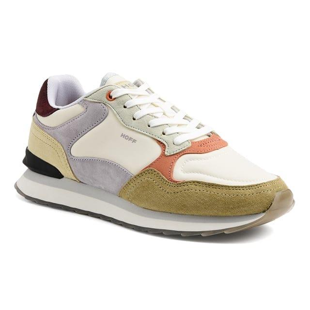 Le sneakers Hoff City sono scarpe versatili pensate per gli amanti della moda e del comfort. Queste scarpe di tendenza sono disponibili in un design multicolore, con una combinazione di bianco, beige, grigio chiaro, rosso scuro e arancione. La tomaia è realizzata in pelle scamosciata tessile e pelle, offrendo una miscela unica di texture e materiali.