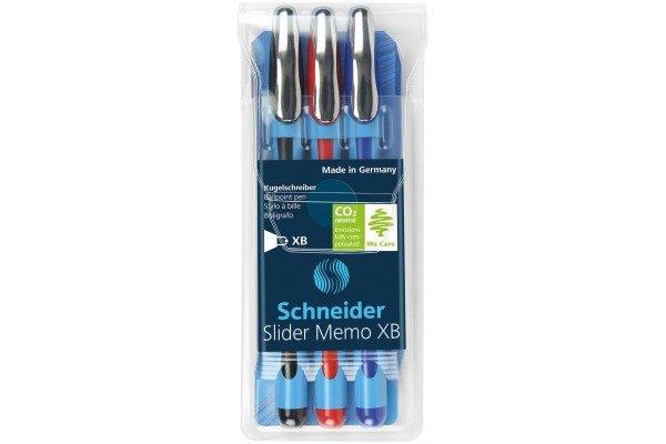 Schneider, Kugelschreiber Slider Memo 3erSet blau, rot, schwarz