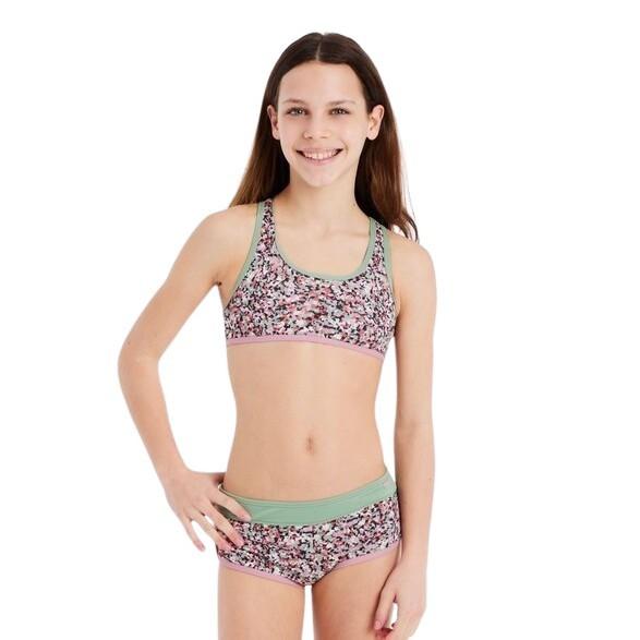 Con il suo look floreale, il PRTDEWI JR di Protest attirerà sicuramente l'attenzione di tutti! Questo bikini è realizzato in un bel tessuto elasticizzato. Con una vestibilità regolare, ha uno stile sportivo perfetto per chi ama nuotare e divertirsi in spiaggia. Lo slip hipster presenta la stessa bella stampa, con una fascia a contrasto intorno alla parte superiore. PRTDEWI JR fa anche parte del nostro impegno per migliorare l'eco-compatibilità delle nostre collezioni. Il tessuto utilizzato è realizzato con materiali riciclati. Inoltre, per produrre questo modello non sono stati utilizzati PFC. Abbiamo invece utilizzato un metodo ecologico. La PRTDEWI JR di Protest, fatta per le vostre avventure estive!