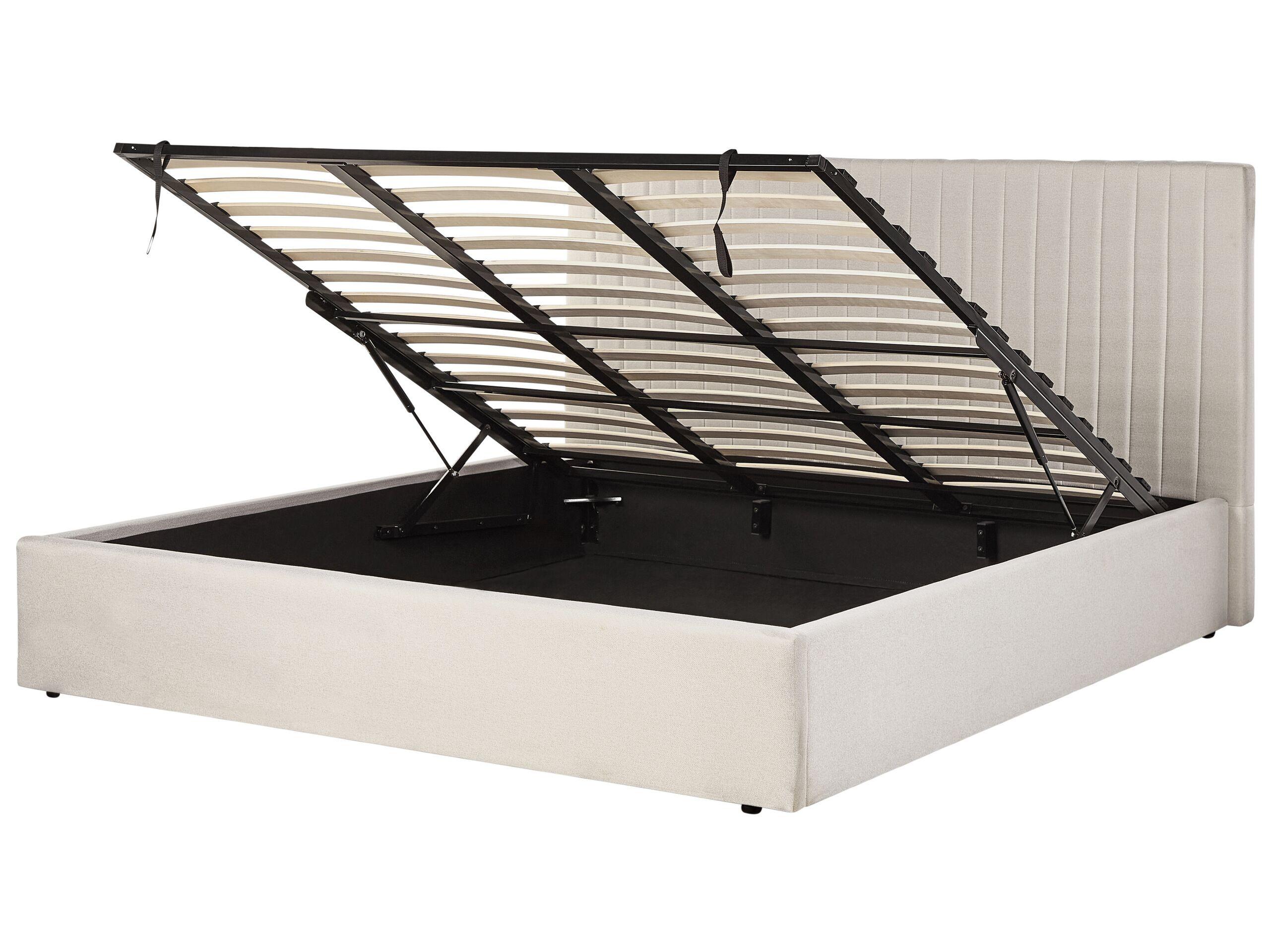 Letto imbottito con contenitore. Porta questo letto nella tua camera da letto e assicurati notti di riposo e relax. Il letto è rivestito in morbido tessuto bouclé di alta qualità, piacevole al tatto e facile da mantenere senza necessità di cure quotidiane. La testiera alta e capitonné lo rende un elemento di grande stile, mentre il capiente vano contenitore si apre con facilità grazie al pratico meccanismo a gas, offrendo spazio comodo per cuscini extra, lenzuola o pigiami.