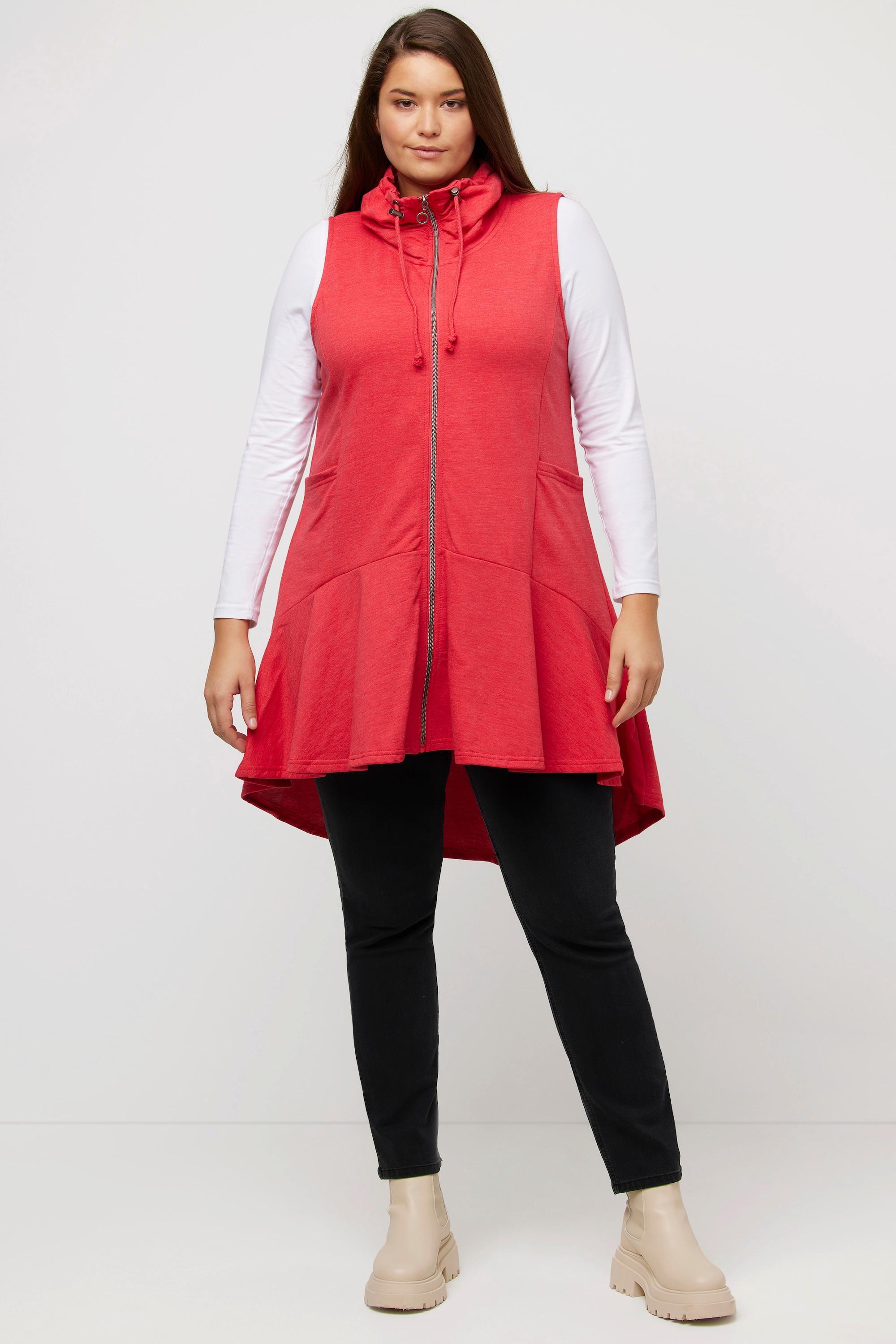 Ulla Popken Gilet in felpa taglio svasato collo alto volant