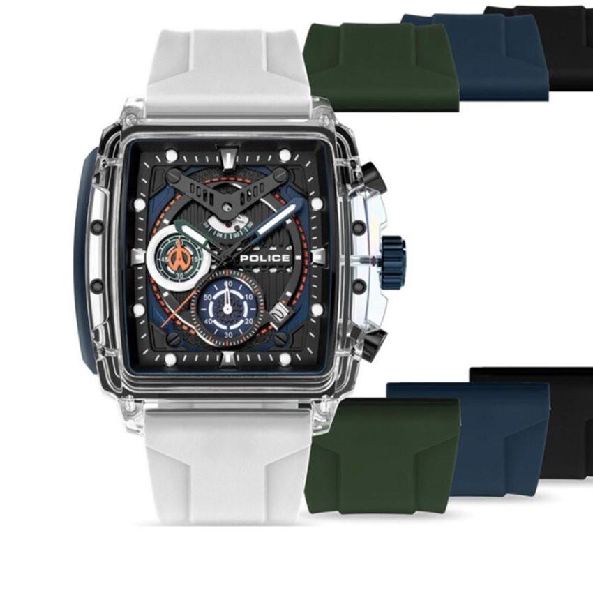 Die jüngste Entwicklung der Marke ist ein Meisterwerk der Uhrmacherkunst, geboren aus dem unermüdlichen Streben, konventionelle Grenzen zu überschreiten. In Anlehnung an das futuristische Ethos von POLICE haben die Designer der Marke einen Zeitmesser geschaffen, der Dynamik und Innovation in sich vereint. Dieser kraftvolle Chronograph ist mehr als nur eine Uhr, er ist ein Statement, das den Geist seines Trägers widerspiegelt. Das Gehäuse des Chronographen besteht aus Nylonfaser, einem Material, das für seine aussergewöhnliche Leichtigkeit und Robustheit bekannt ist. Das verleiht der Uhr nicht nur eine unübertroffene Haltbarkeit, sondern auch eine einzigartige Ästhetik. Das kühne, quadratische Zifferblatt bricht mit traditionellen Designs und erinnert uns daran, dass Zeit nicht nur etwas ist, das man misst, sondern auch etwas, das man gestaltet und erlebt.