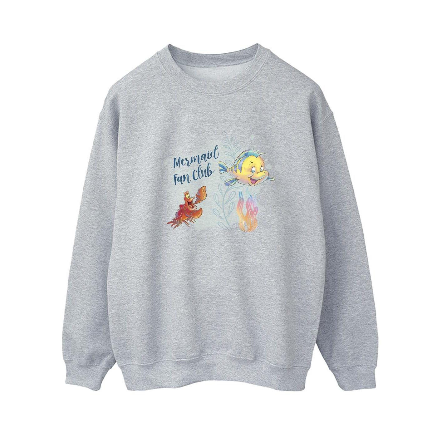 Questa felpa presenta una deliziosa grafica de "La Sirenetta" di Disney, che mostra i compagni amati di Ariel, Flounder e Sebastian, insieme al testo "Mermaid Fan Club". Il design è stampato su una comoda felpa grigia classica, rendendola un'aggiunta deliziosa a qualsiasi guardaroba casual.