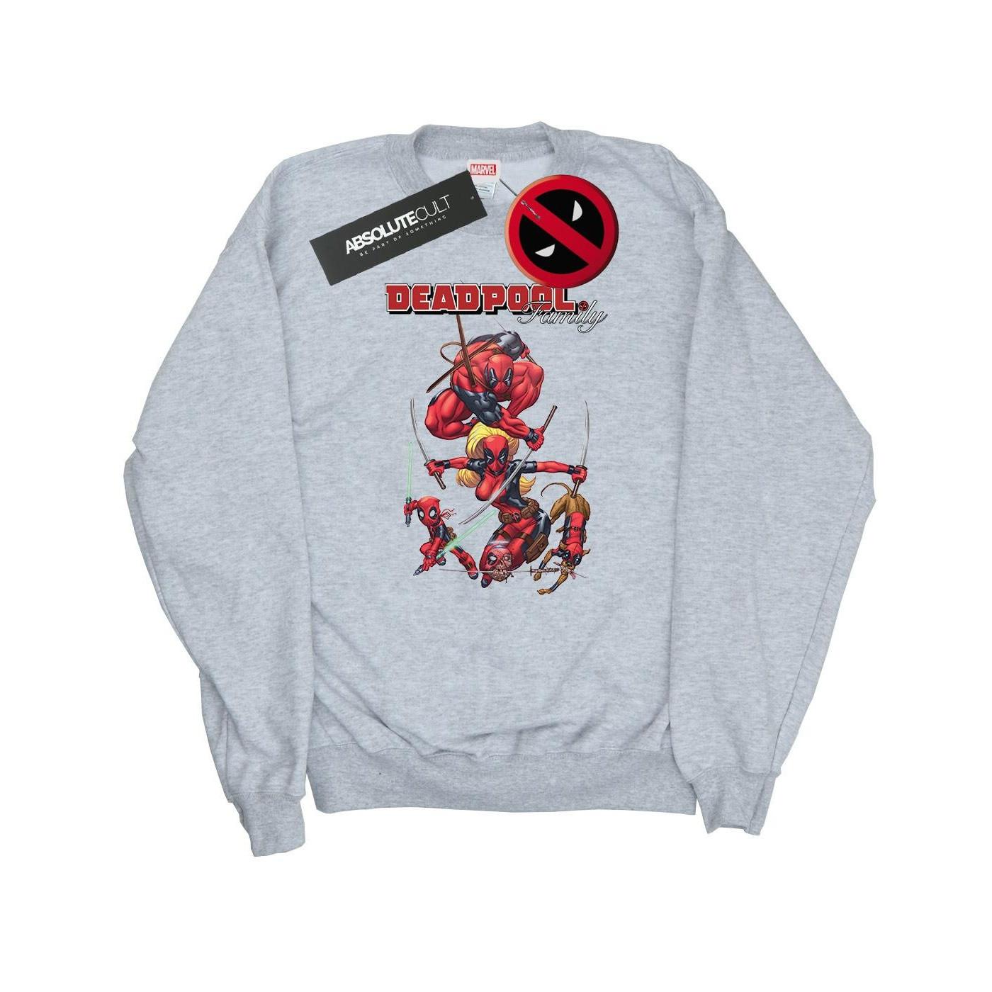 Questa felpa presenta una stampa grafica unica della famiglia Deadpool, che mostra varie iterazioni del personaggio in un design ricco di azione. Il girocollo e le maniche lunghe offrono una vestibilità classica e confortevole, rendendola un'aggiunta versatile a qualsiasi guardaroba casual.