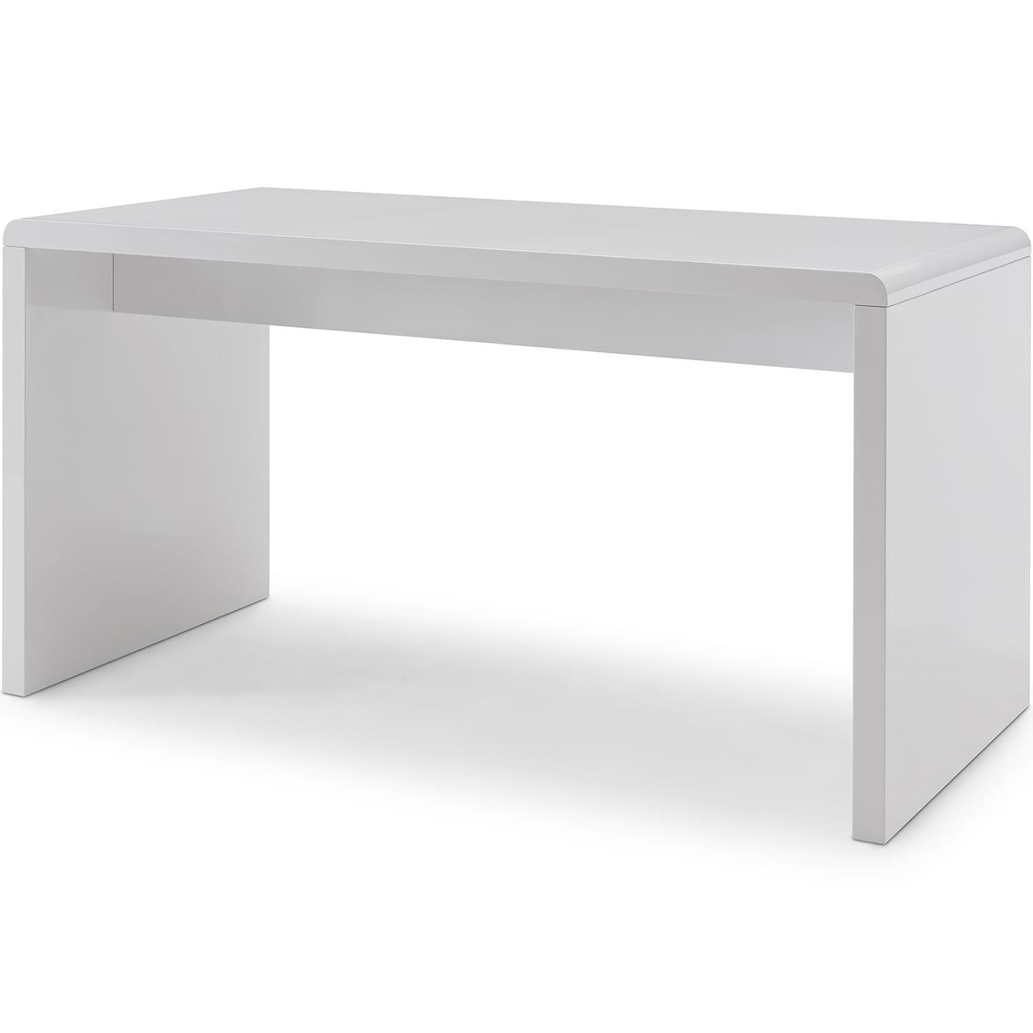 La soluzione ideale per l'ufficio di casa è offerta da questa scrivania dal look lineare. Colpisce per il suo design moderno e lucido e per la combinazione di colori senza tempo. Sul piano d'appoggio c'è spazio a sufficienza per un computer portatile, utensili da scrittura e una lampada da tavolo. La scrivania è disponibile in quattro diverse dimensioni per soddisfare ogni esigenza. Dalla versione compatta per stanze piccole e nicchie di lavoro al piano da 180 cm: scegliete la dimensione più adatta alla vostra casa. La superficie in MDF, di facile manutenzione, è ideale per l'utilizzo in aree di lavoro molto frequentate.Scrivania dal look moderno e lucidoDesign semplice che si adatta a molti stili abitativiSuperficie in MDF di facile manutenzioneLe linee rette rendono la scrivania un pezzo d'arredamento eleganteSpessore del piano 4,5 cmLaccato bianco lucidoSpessore del piano 4,5 cm, distanza dal bordo del tavolo al montante 45 cm