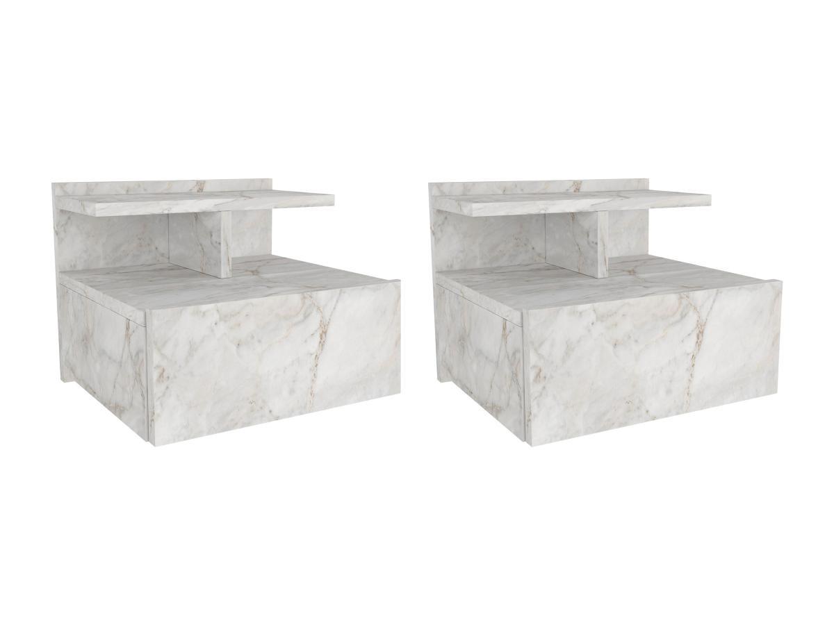 Vente-unique, Comodino sospeso 1 cassetto Effetto marmo Bianco - Lotto di 2 - AZELNO