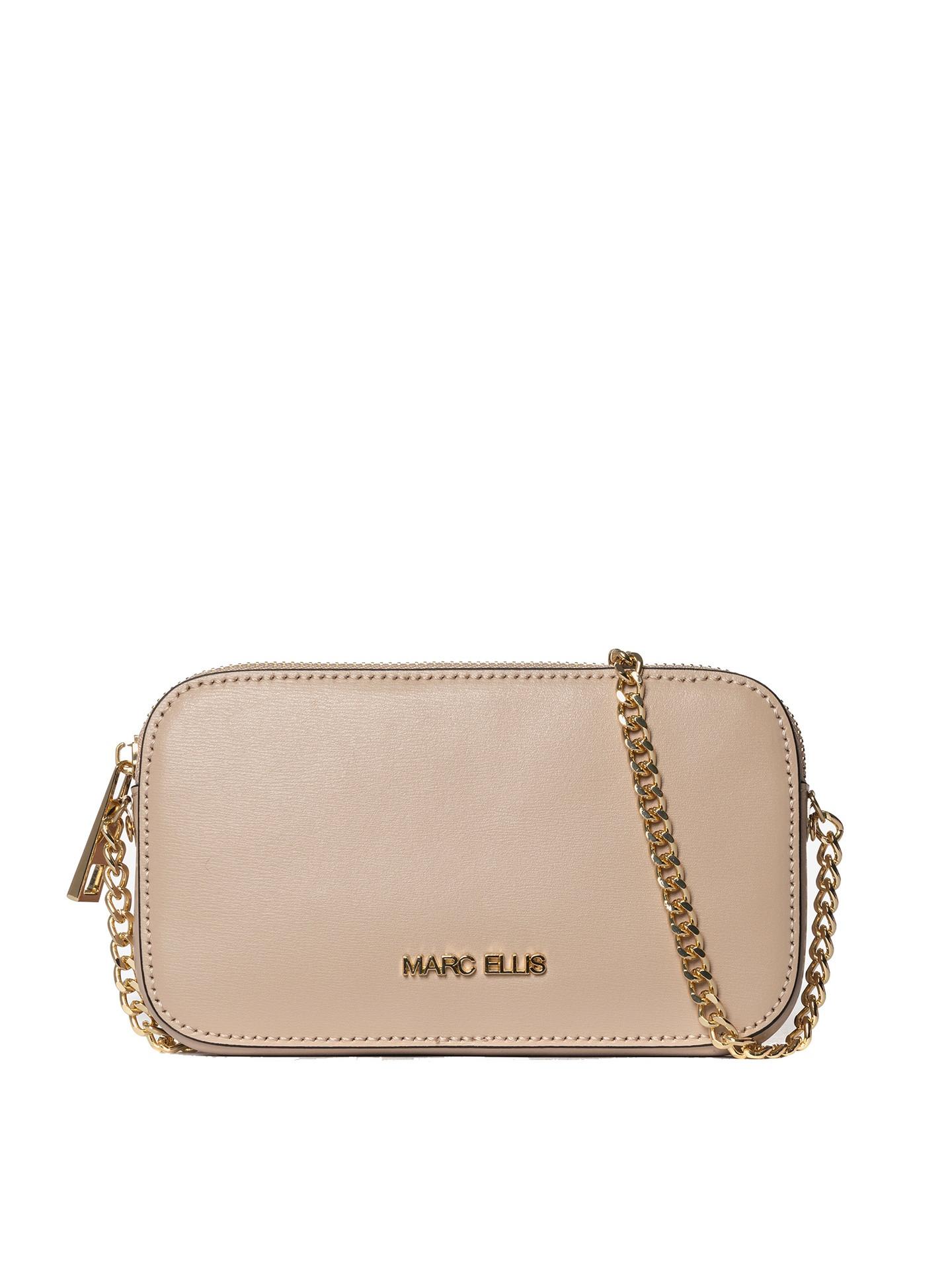 Questa elegante borsa a mano presenta un design raffinato con uno scomparto principale chiuso da una cerniera. La borsa è impreziosita da un'elegante tracolla a catena, che aggiunge un tocco di sofisticazione a qualsiasi outfit. La parte anteriore della borsa mostra con orgoglio un logo metallico.