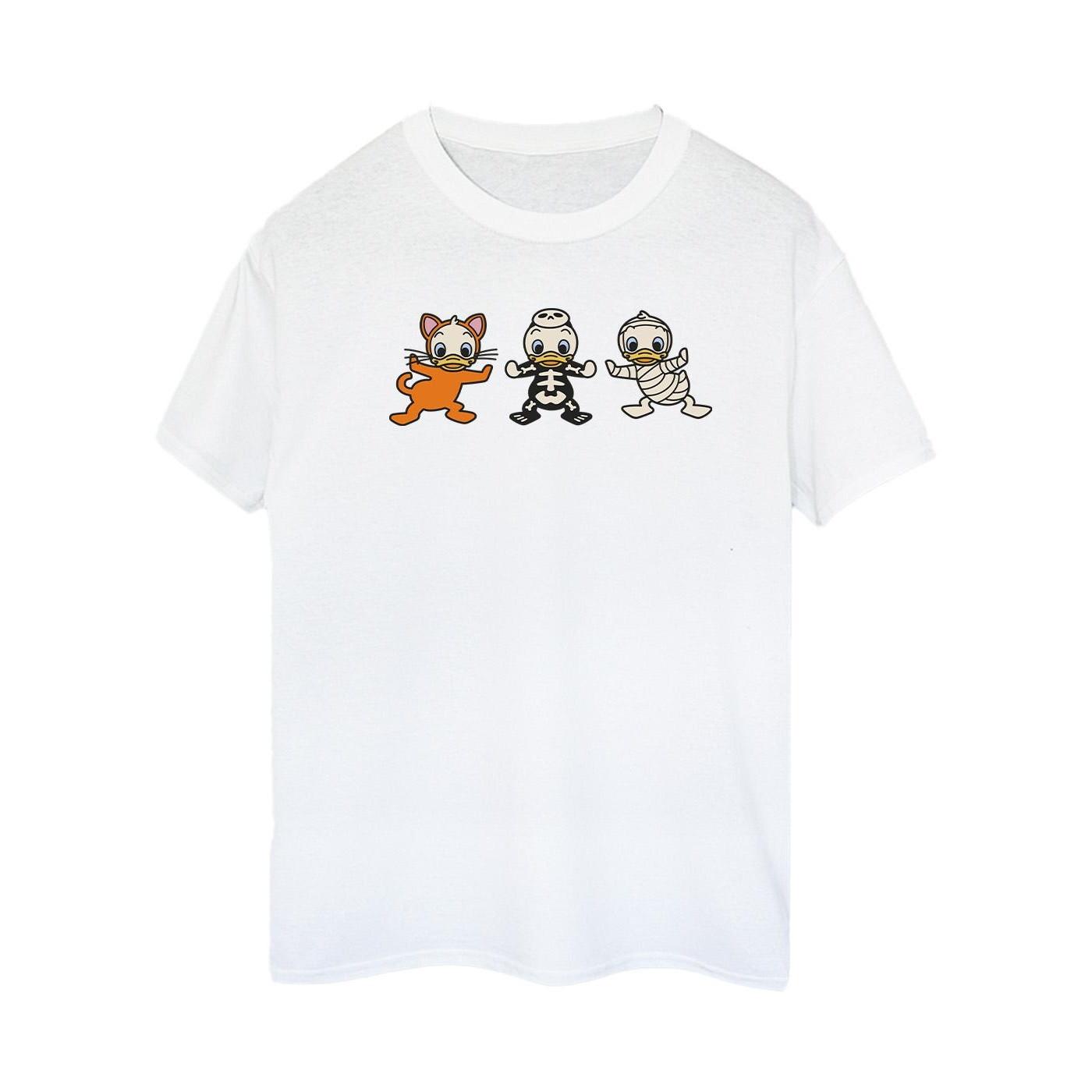 Questa T-shirt presenta una stampa grafica giocosa di Qui, Quo e Qua vestiti con costumi di Halloween. Il classico girocollo e le maniche corte la rendono un'aggiunta comoda e versatile a qualsiasi guardaroba casuale.