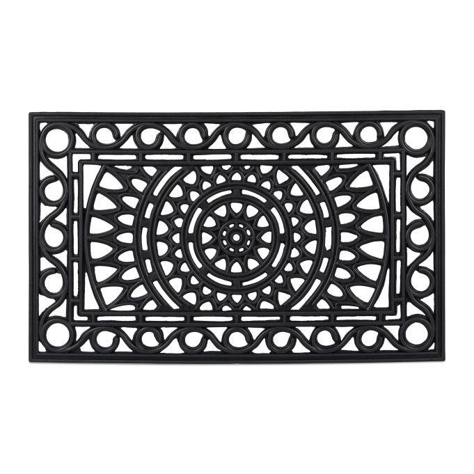 Ravviva il tuo ingresso con questo zerbino decorativo, realizzato per mantenere un ingresso pulito e invitante. Questo zerbino in gomma nera, dall'elegante aspetto ferroso, trattiene efficacemente lo sporco all'esterno.