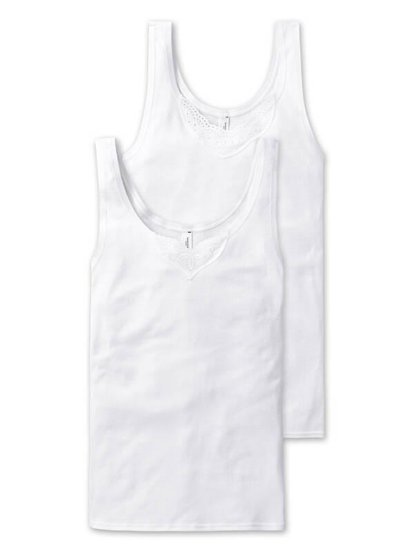 Questa confezione doppia di top in cotone offre uno strato base comodo e versatile per l'uso quotidiano. Il tessuto morbido dona una piacevole sensazione sulla pelle, rendendolo adatto a varie attività o come intimo. L'elegante confezione doppia presenta un design classico con due diversi motivi di ricamo in batista.