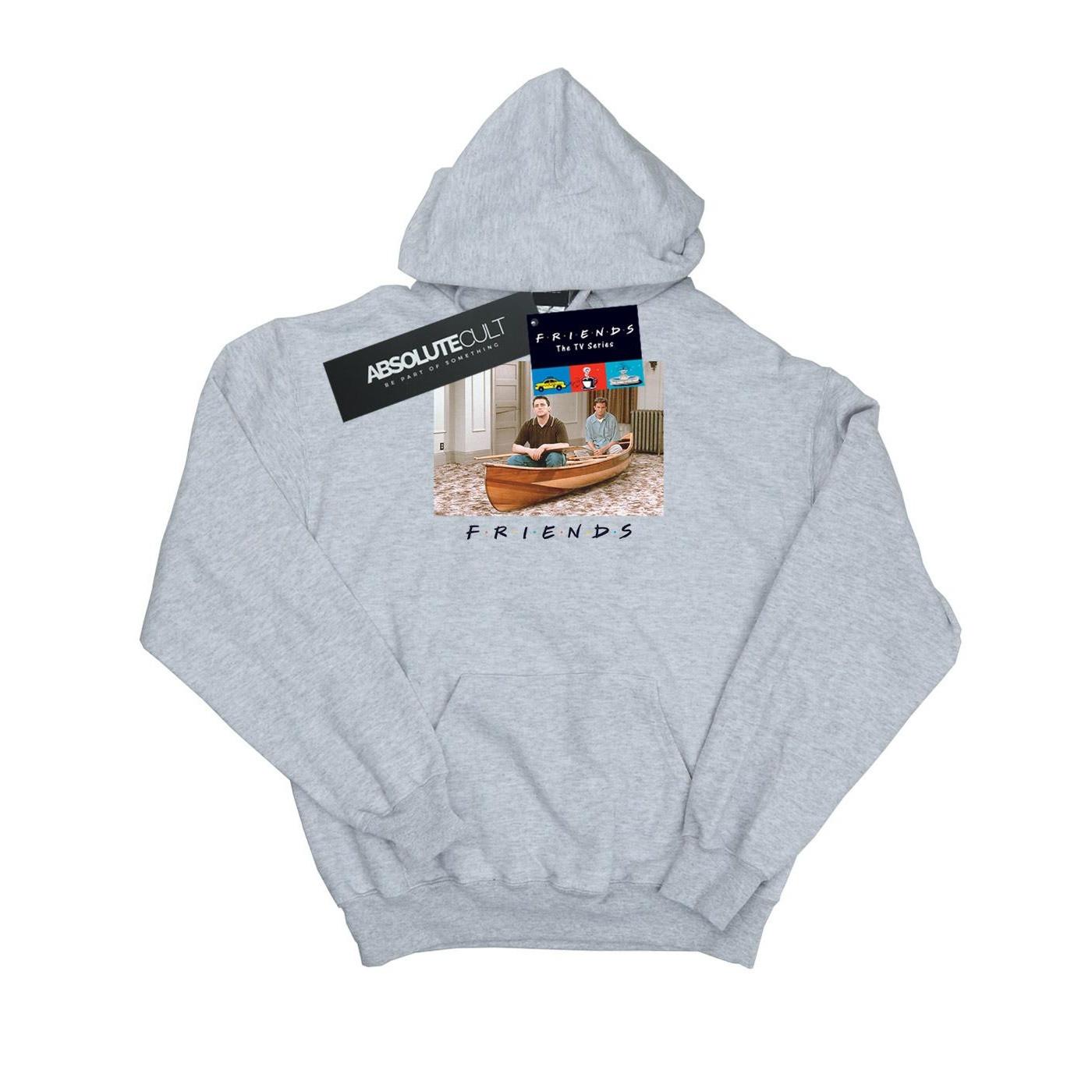 Questa felpa con cappuccio presenta un design classico con una comoda vestibilità regolare, rendendola un'aggiunta versatile a qualsiasi guardaroba. La parte anteriore è decorata con una stampa grafica di Joey e Chandler della serie TV Friends in canoa, aggiungendo un tocco di fascino nostalgico.