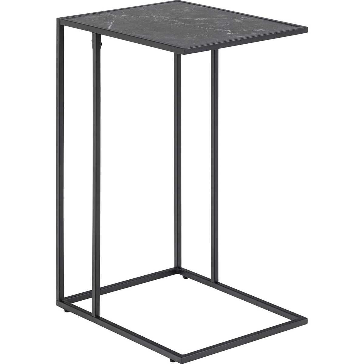 Tavolino in metallo, melamina, MDF, colore nero, 43x35x63 cm.Piano del tavolo conaspettomarmoreoStrutturain metallo con verniciatura a polvere neraDecentedesign industrialeImateriali accuratamente selezionati sono di facile manutenzionemax.Capacità di carico - superficie principale: 20 kgProtezione del pavimento: tappi in plastica per i piediAltezza delle gambe: 63 cm Spessore del pannello superiore: 12 mm