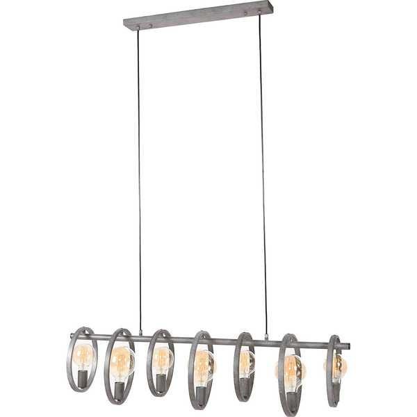 Lampada a sospensione circolare 7 luci, finitura argento antico, 112x30x150cm