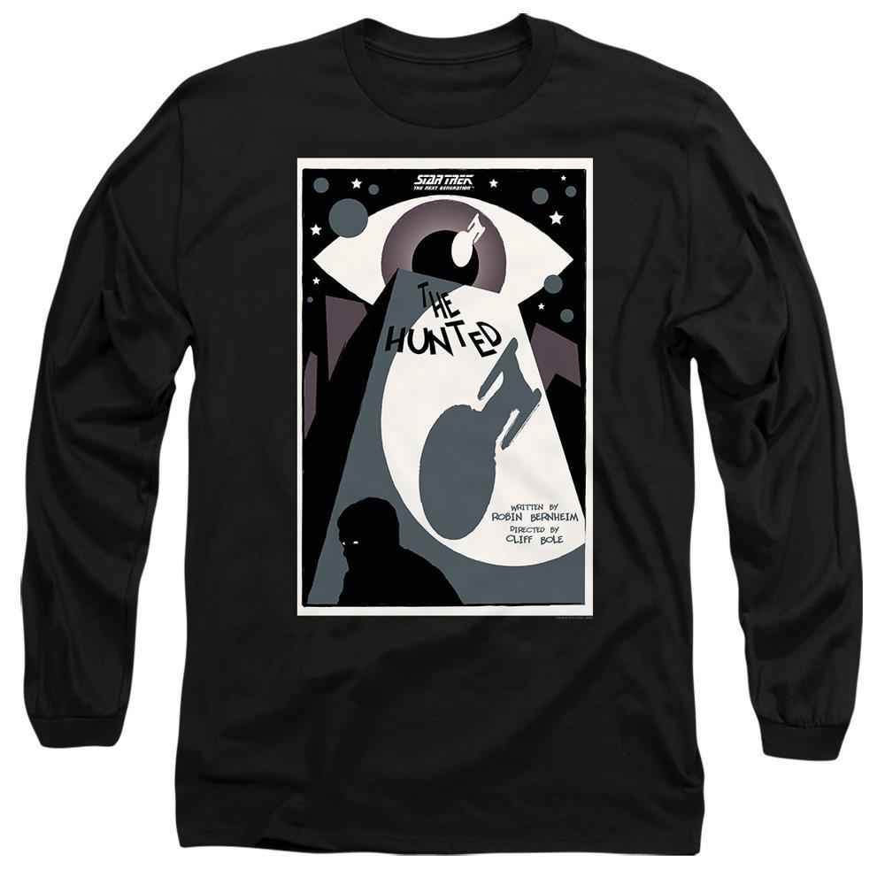Questa t-shirt a maniche lunghe presenta una stampa grafica unica ispirata a "The Hunted", stagione 3 episodio 11 di Star Trek: The Next Generation. Il design cattura l'essenza dell'episodio con una rappresentazione stilizzata della USS Enterprise e altri elementi tematici, rendendola un capo distintivo per i fan.