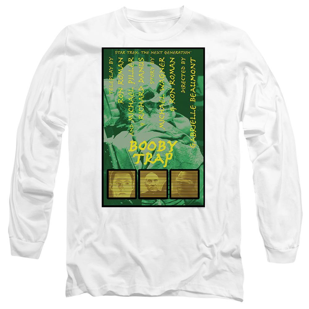 Questa T-shirt presenta una stampa grafica ispirata a "Booby Trap", stagione 3 episodio 6 di Star Trek: The Next Generation. Il design include il titolo dell'episodio e i crediti, rendendola un pezzo distintivo per i fan della serie.