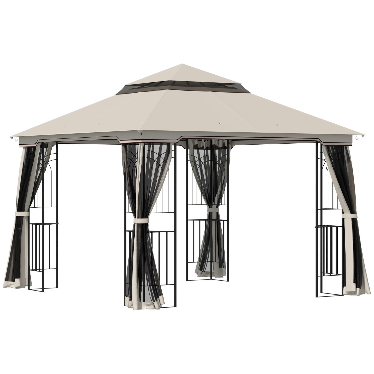 Northio, Gazebo Da Giardino Con Doppio Tetto Gazebo Da Giardino Tendone Per Feste Con 4 Pareti Laterali In Metallo + Poliestere Beige 2,99 X 2,99 X 2,74 M