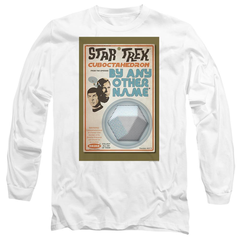 Questa t-shirt presenta una grafica ispirata a Star Trek: The Original Series, in particolare all'episodio 51, "By Any Other Name". Il design mostra una pubblicità in stile vintage per un oggetto da collezione "Cuboctahedron", completo di immagini del Capitano Kirk e Spock.