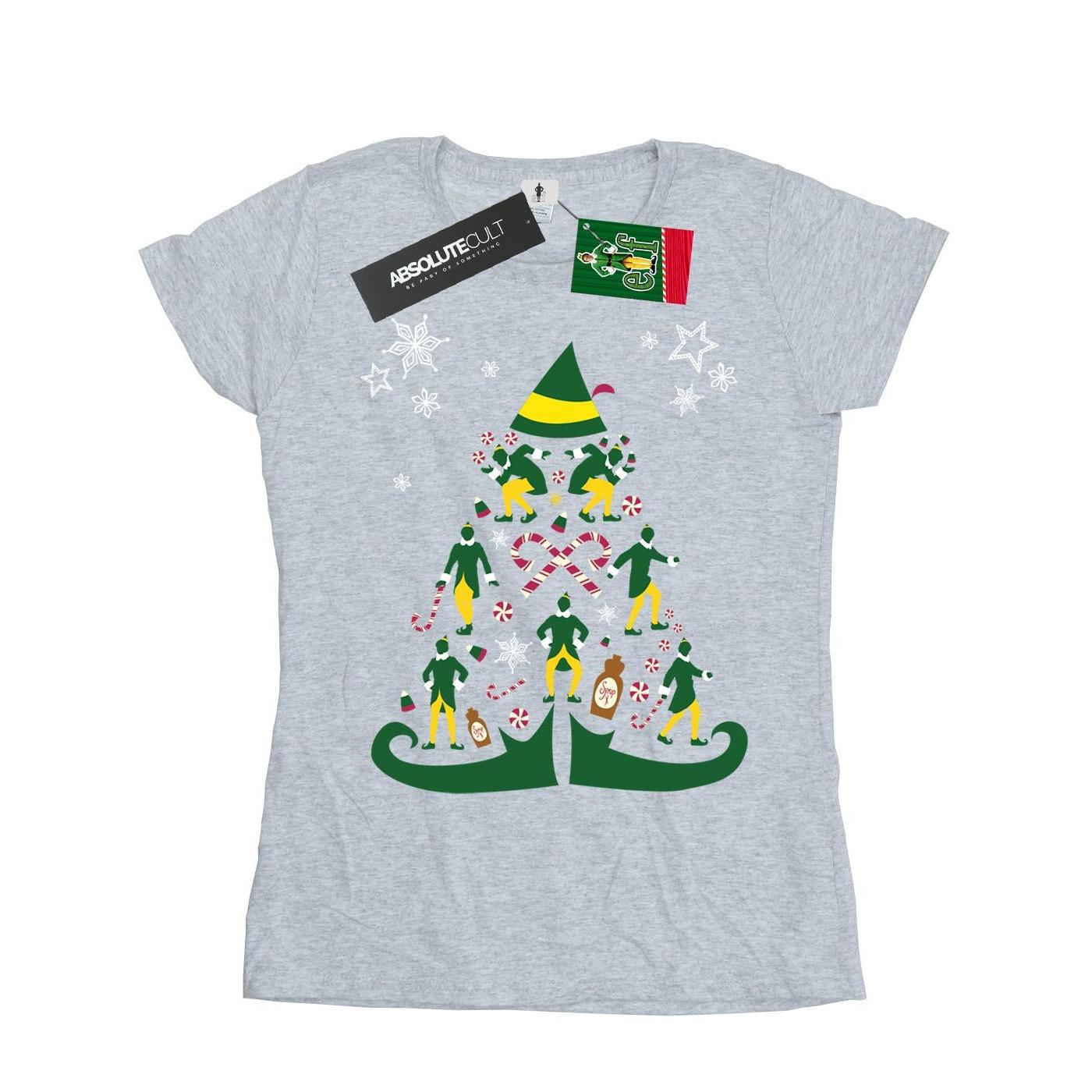 Questa T-shirt presenta un design festivo a forma di albero di Natale composto da elfi, bastoncini di zucchero e fiocchi di neve. È un modo divertente e unico per celebrare le festività.