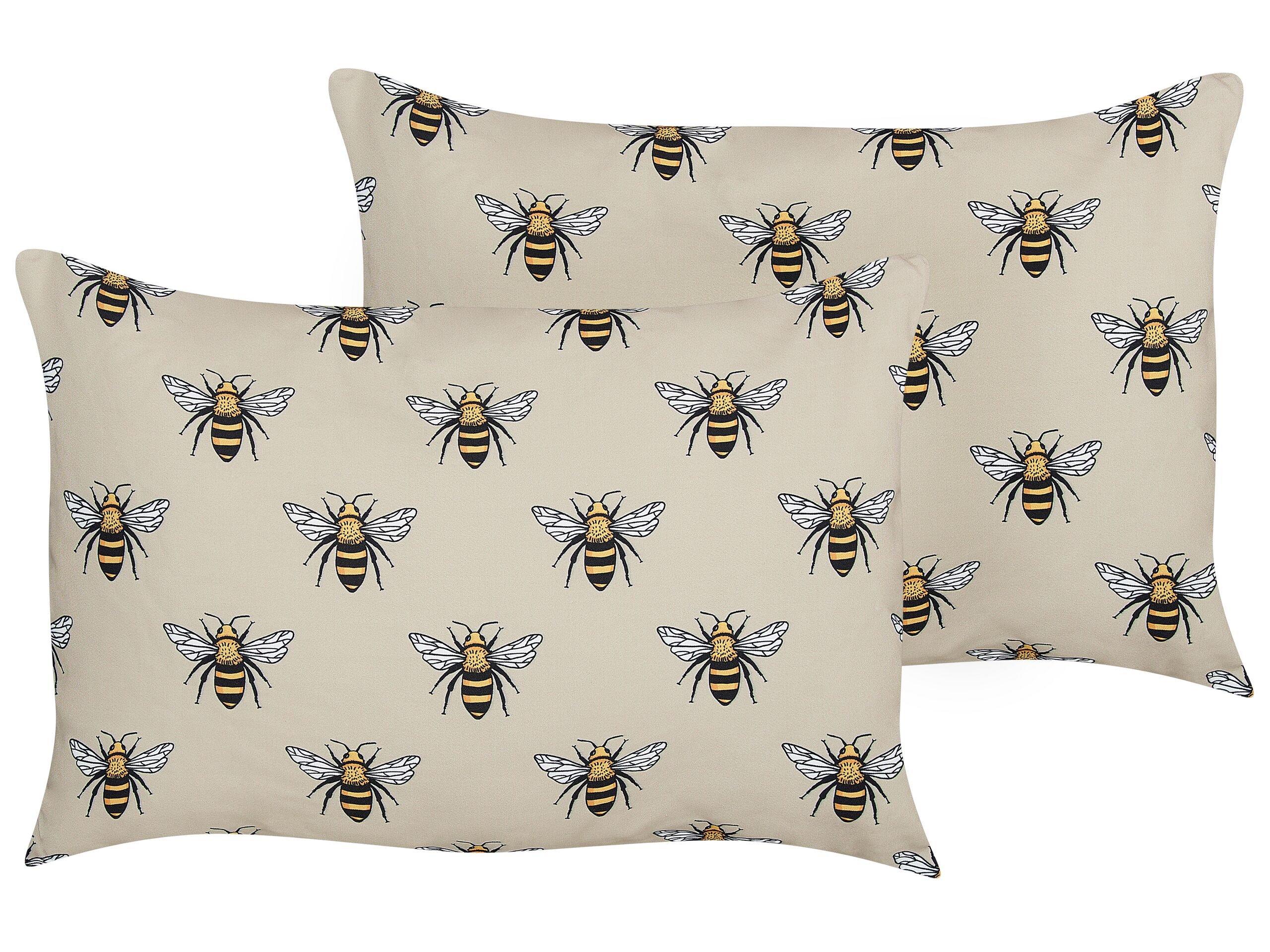 Cuscini da giardino con stampa di ape. Prova un tocco di fascino della natura con questo set di due cuscini ornati da un delizioso motivo ape. Questi accessori, adatti sia per ambienti interni che esterni, sono dotati di fodere e imbottitura in poliestere resistente per il massimo comfort. Inoltre, essendo sfoderabili, i cuscini sono di facile manutenzione quotidiana: per rinfrescarli tu devi solo lavarli a mano.