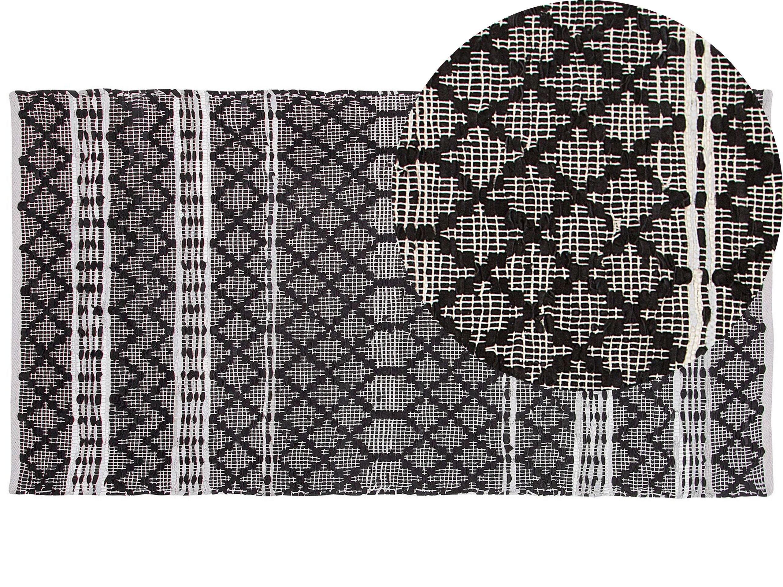 Moderno tappeto realizzato a mano. Rendi la casa ancora più moderna ed accogliente con questo tappeto. Realizzato a mano in un mix di vera pelle e soffice cotone, grazie al suo motivo decorativo è la scelta ideale per la zona office.