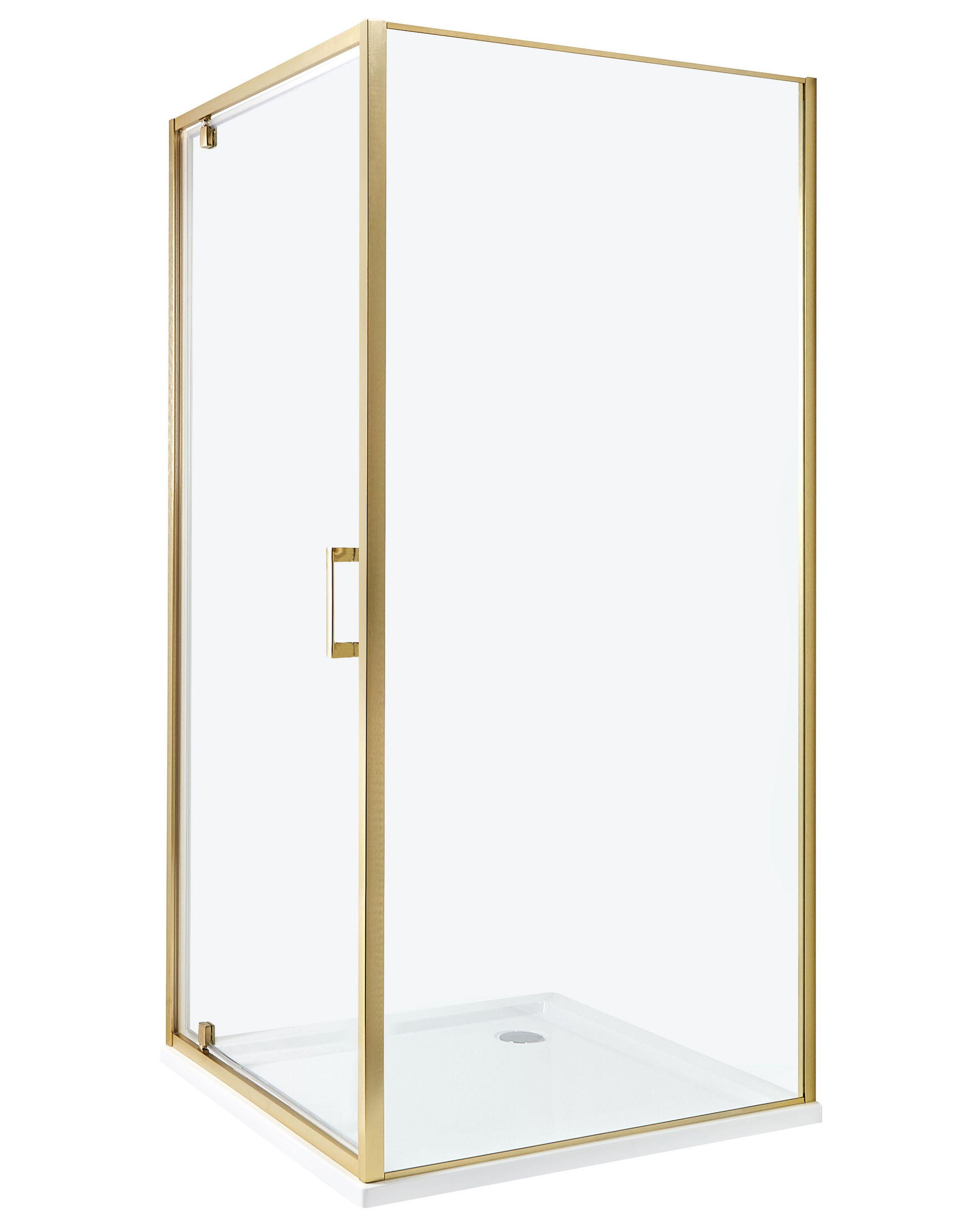 Box doccia quadrato con porta singola. Rinnova il tuo bagno aggiungendo un elemento che catturerà l'attenzione e offrirà anche una grande utilità. Questa cabina doccia in vetro temperato, resistente e facile da pulire, migliorerà l'esperienza del tuo bagno. La finitura dorata aggiunge un tocco di design moderno, mentre le porte scorrevoli permettono di mantenere l'ambiente asciutto, anche durante docce più lunghe. Un mix perfetto di stile e funzionalità per trasformare il tuo bagno in un'oasi contemporanea.