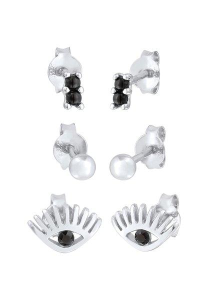 Elli Ohrringe Stecker Evil Eye Kugel Kristall 3Er Set