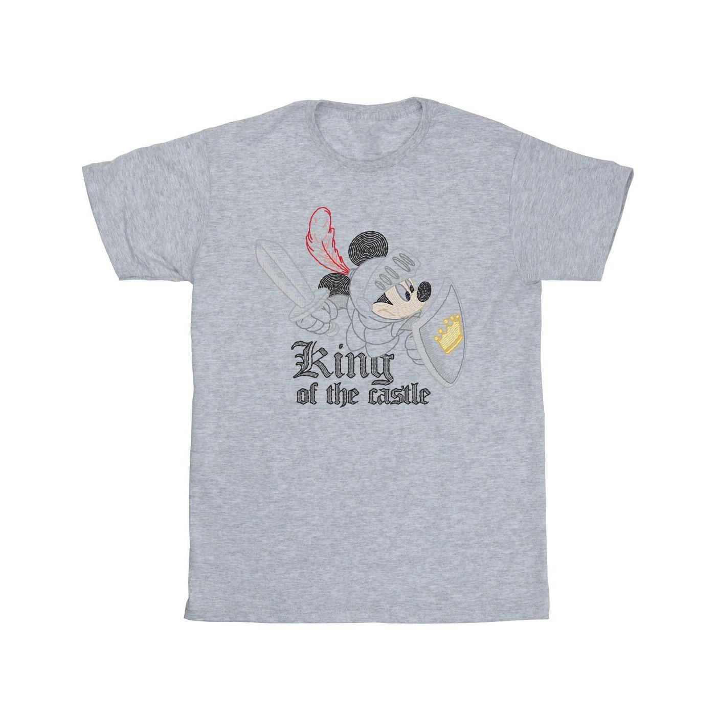 Questa T-shirt presenta una stampa grafica giocosa di un amato personaggio vestito da cavaliere, completo di spada, scudo e elmo, insieme al testo "King of the castle". Il design aggiunge un tocco di fantasia e fascino a un capo classico del guardaroba.