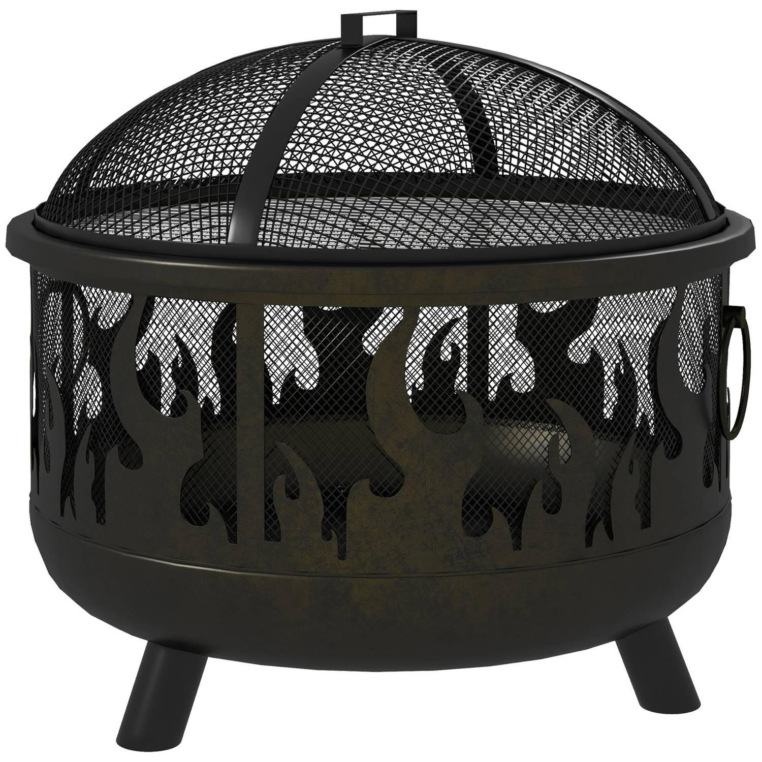 Northio Braciere 2 In 1 Braciere Con Parascintille E Griglia, Per Barbecue Da Giardino, Metallo, Nero, Ø61X55Cm