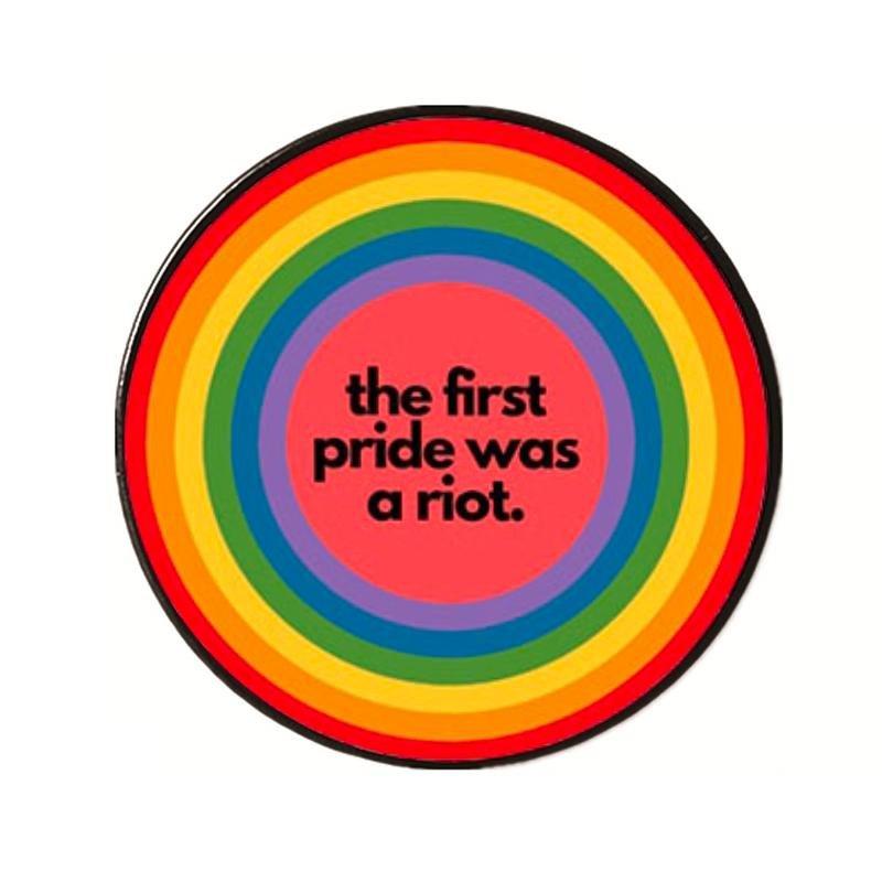 Ravviva il tuo abbigliamento e difendi l'uguaglianza con questa spilla alla moda! Il testo recita "The first pride was a riot". Si adatta sia alla giacca che alla borsa preferita. Il motivo è costituito da un arcobaleno circolare.