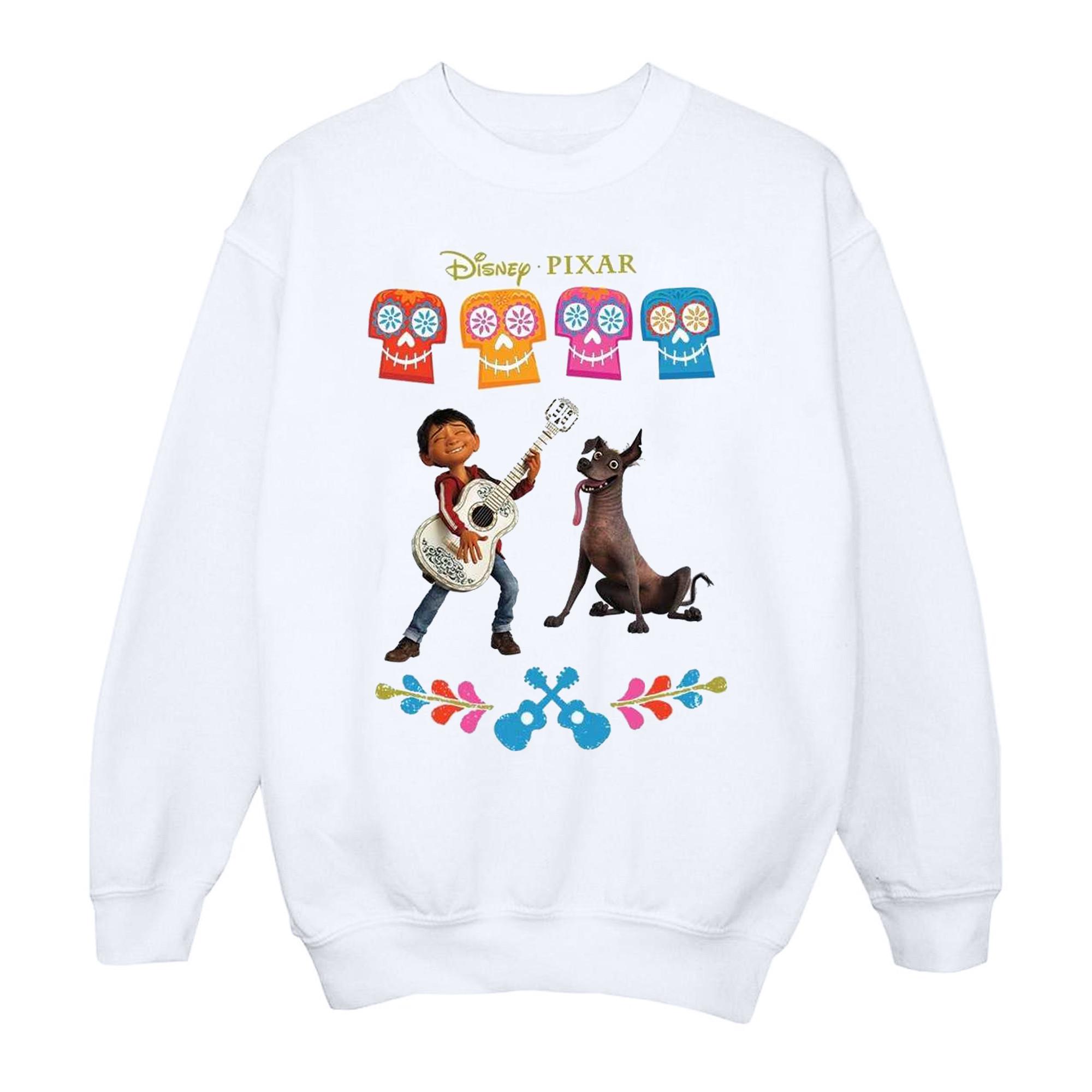 Questa felpa presenta una vivace stampa grafica ispirata a Coco di Disney Pixar. Il design mostra Miguel che suona la chitarra insieme a Dante, con teschi di zucchero colorati ed elementi decorativi. Questa comoda felpa è adatta per varie occasioni casual.