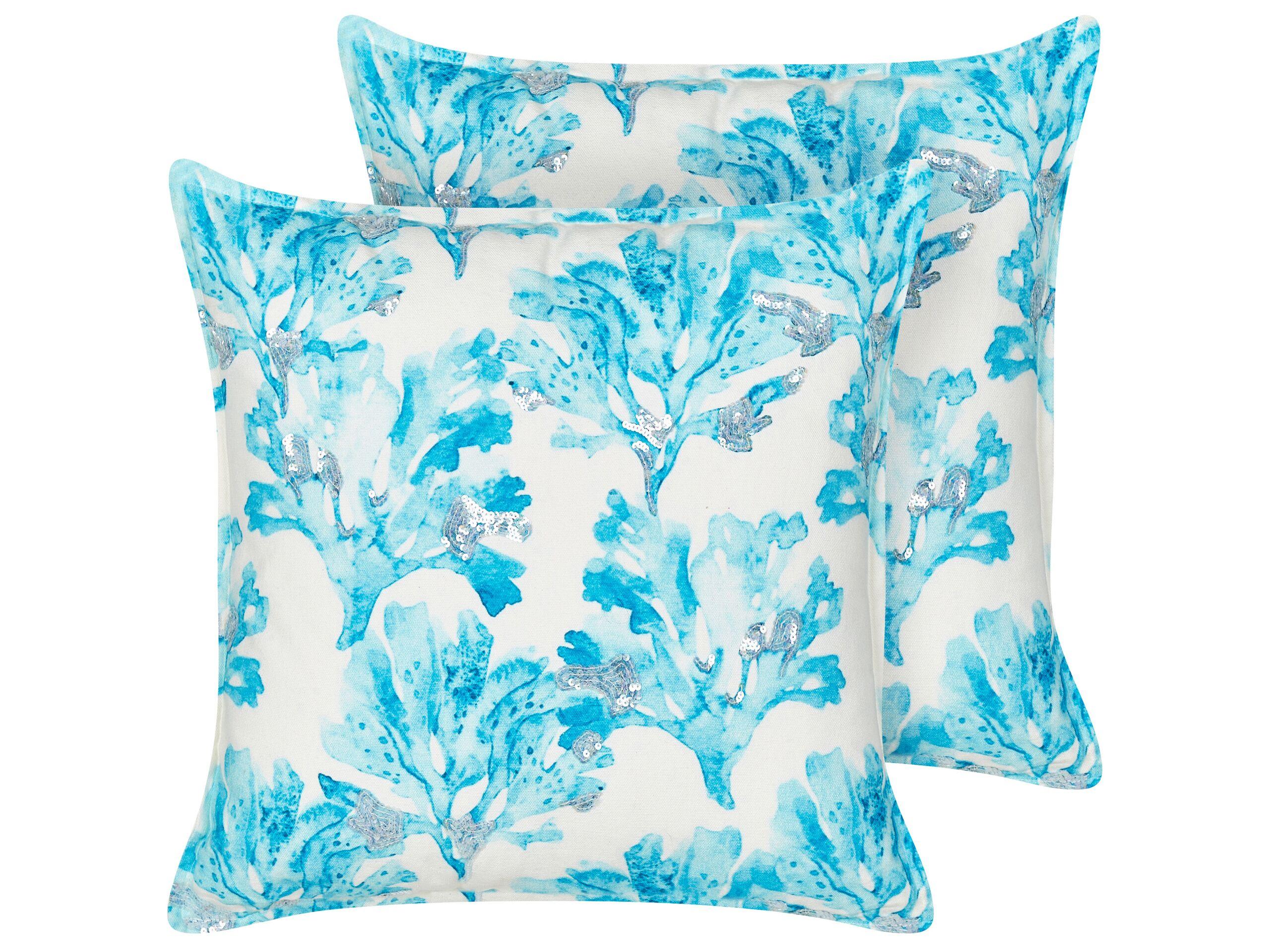 Set di 2 cuscini decorativi a tema marino. Rinnova il tuo arredamento con questi cuscini quadrati che aggiungeranno un fascino marino al tuo interno. Realizzati in cotone e imbottiti con soffice poliestere, sono piacevoli all'uso e resistenti. Le fodere rimovibili assicurano una manutenzione comoda. Si integreranno perfettamente in tutti gli interni con uno stile moderno.