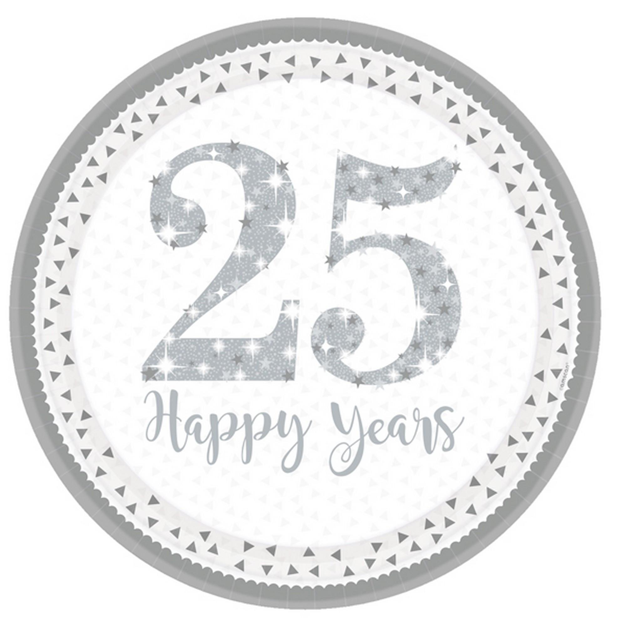 amscan Pappteller mit Aufschrift 25 Happy Years, 23 cm, 8 Stück