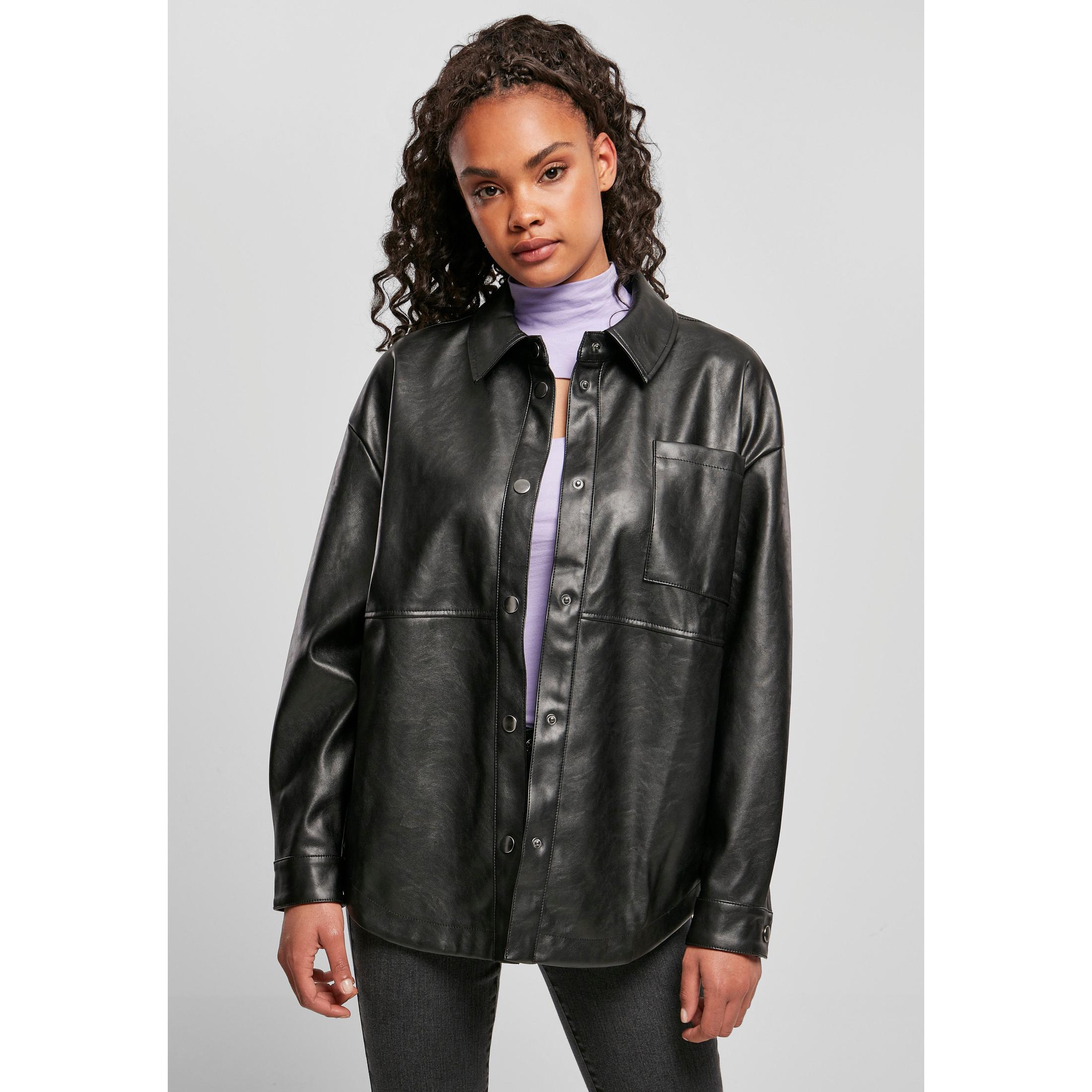 Dotata di colletto, abbottonatura e ampia tasca sul petto, questa camicia da donna con giacca in pelle è un compagno casual e distintivo. Il taglio oversize, le spalle scese e l'orlo arrotondato gli conferiscono un look urbano. La giacca della camicia lucida è fatta di pelle sintetica.